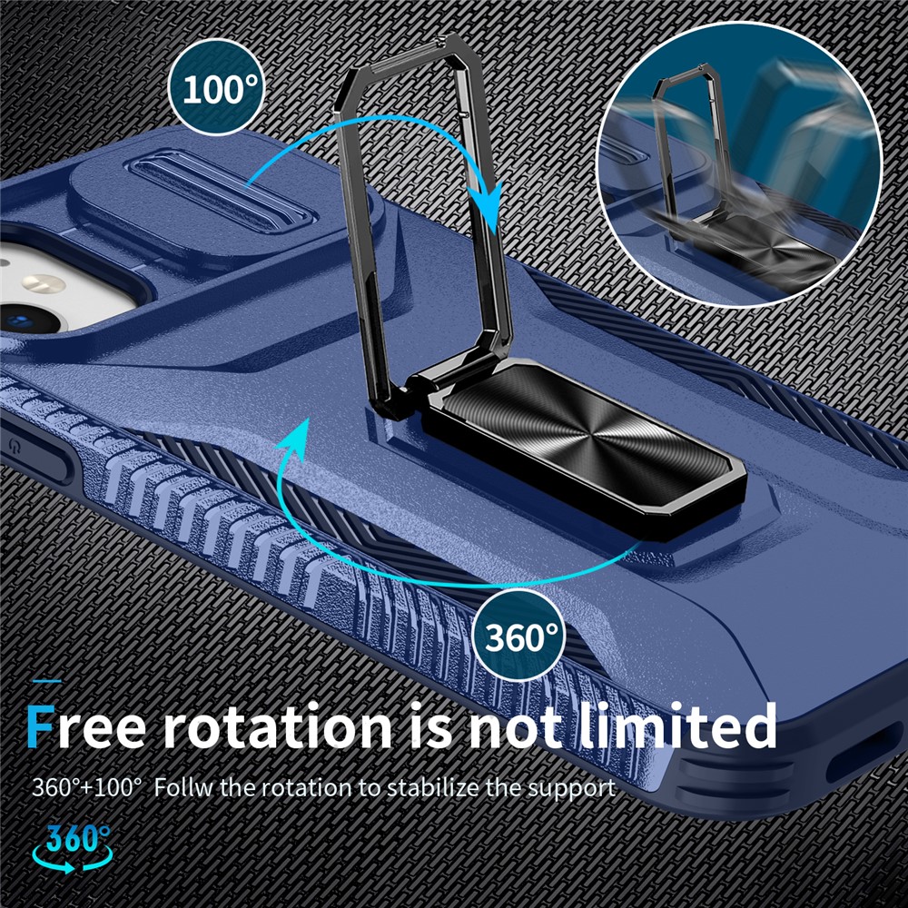 - Designed with a metal ring kickstand for horizontal and vertical screen supports
