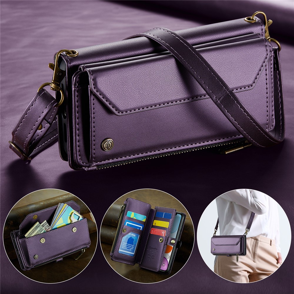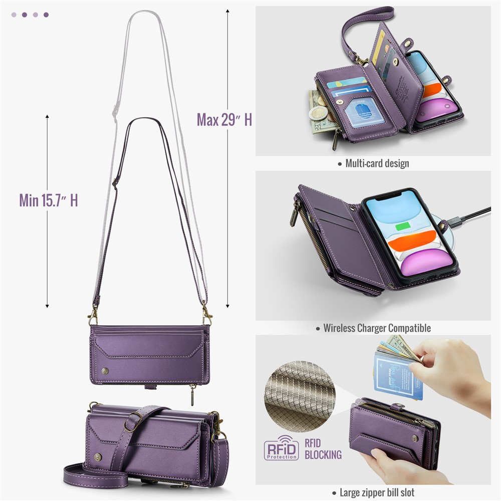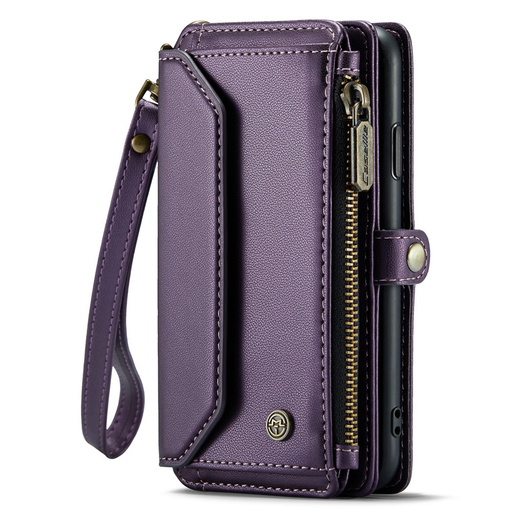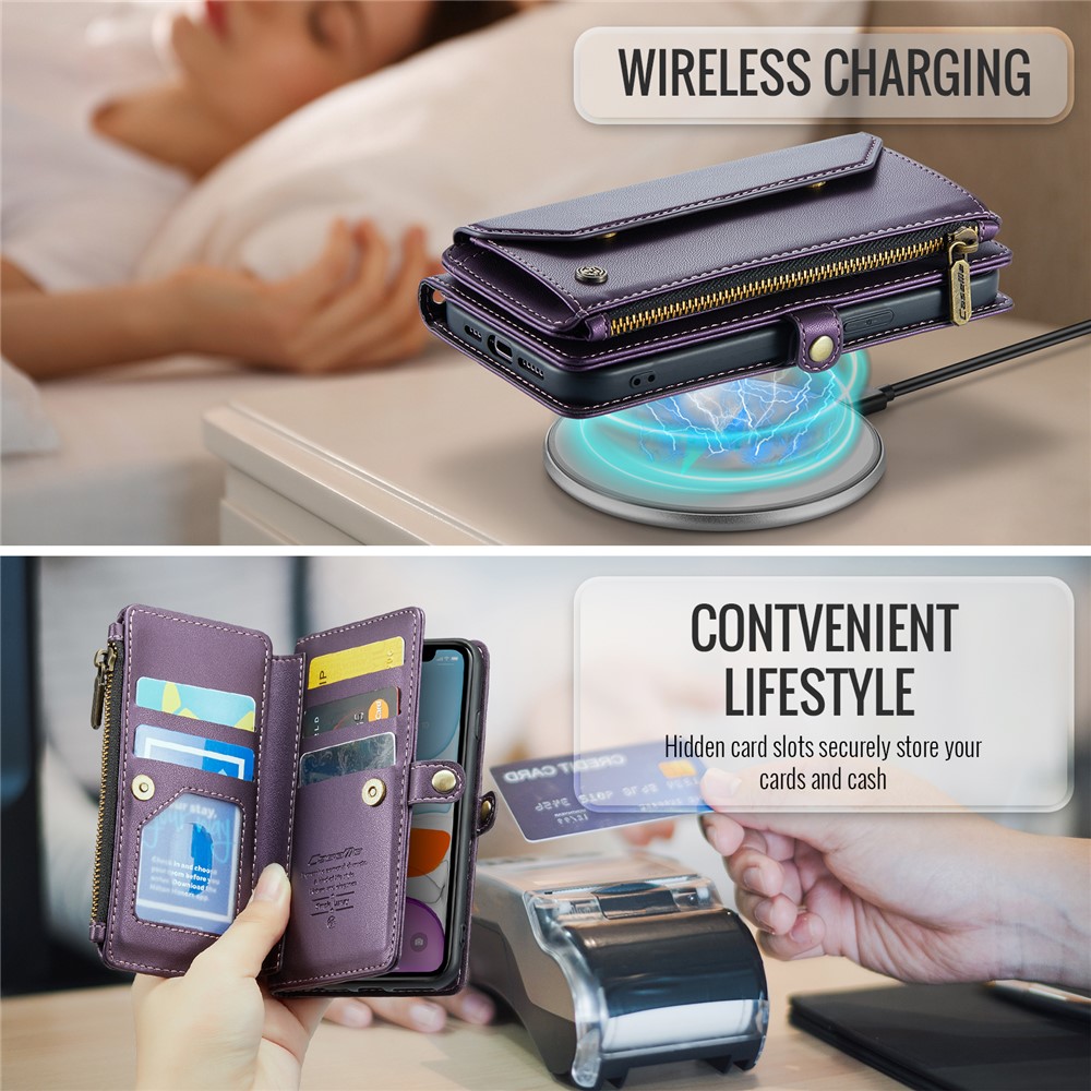 For iPhone 11 Leather Case CASEME C36 Zipper Multiple Card Slots Phone Cover with Straps – Purple