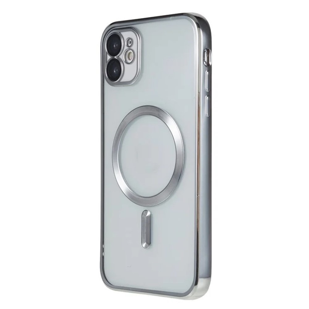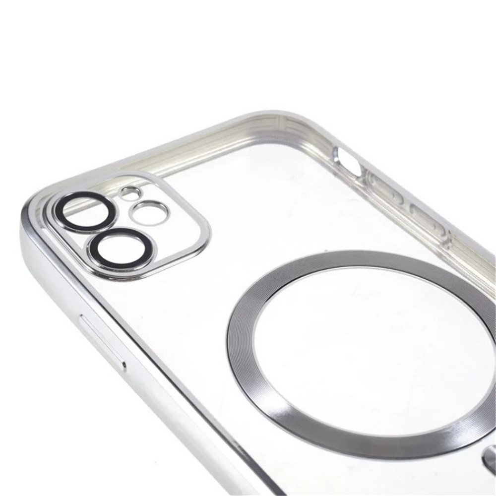 For iPhone 11 Magnetic Case WANLONFENG Full Protection Electroplated TPU Cover with Tempered Glass – Silver