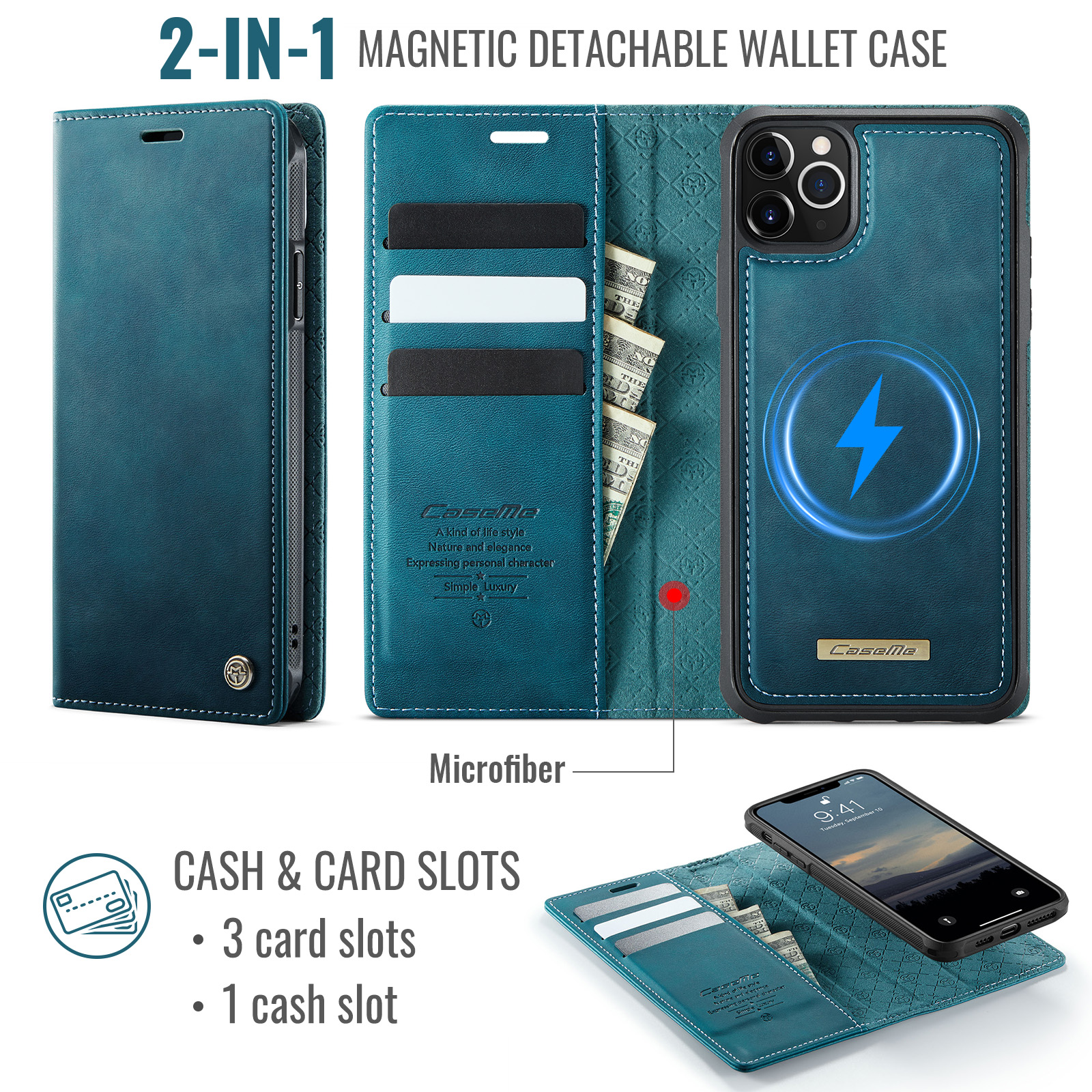 - Magnetic Detachable Wallet Design Built-in 3 card slots, and a cash pocket for credit cards, IDs, and cash. Magnetic detachable 2-in-1 design, can be used as a single shell or as a leather case