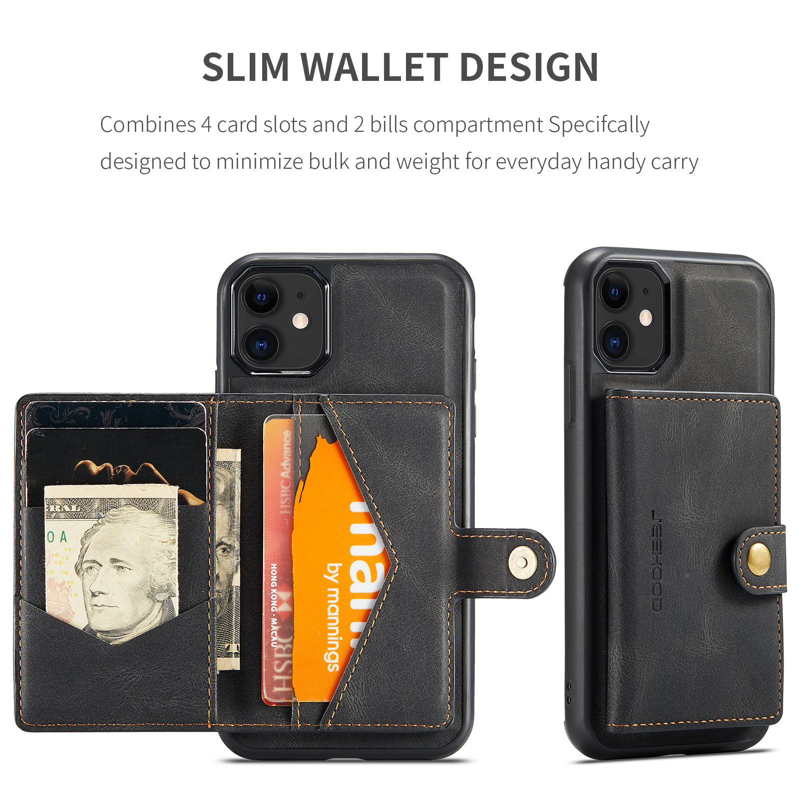 - Magnetic Detachable 2-in-1 Design The case features a detachable magnetic card holder and phone case that easily snap together or apart, providing versatile usage options