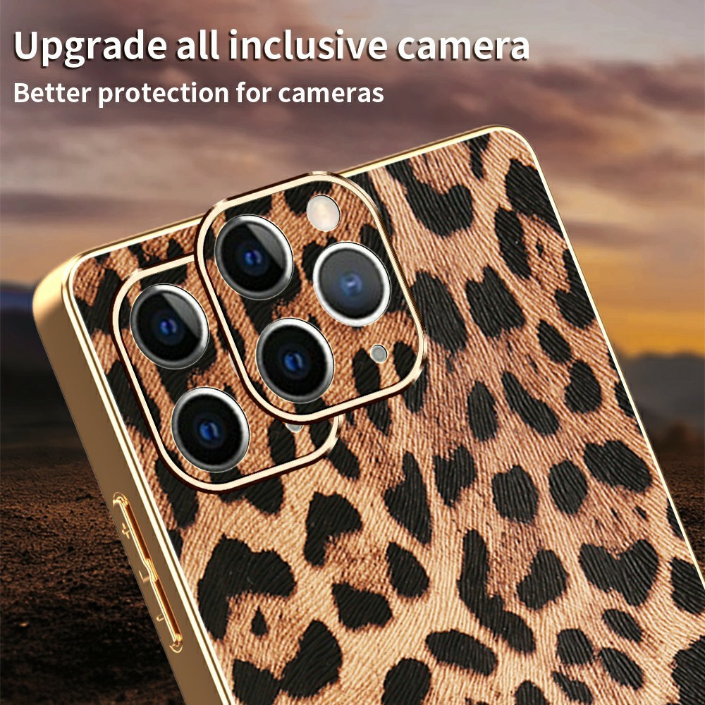 • Stylish Leopard Print Design Features a bold and elegant leopard pattern with gold electroplated edges, bringing a fashionable and luxurious aesthetic to your device