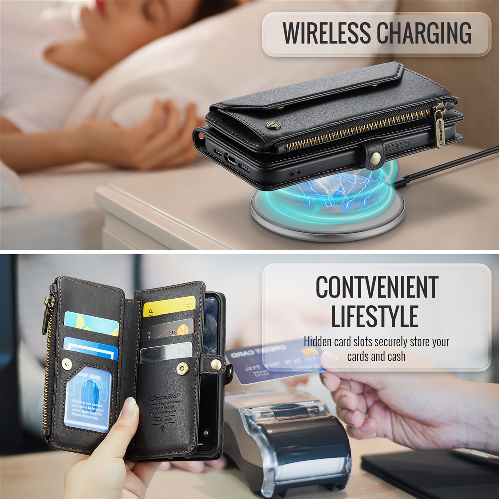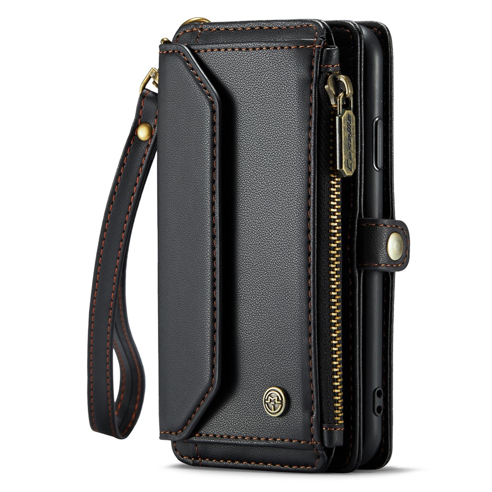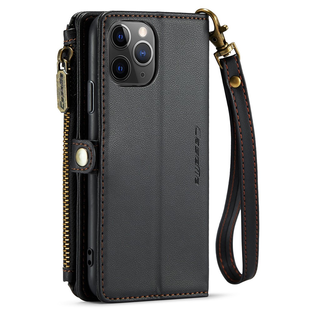 For iPhone 11 Pro Leather Case CASEME C36 Zipper Multiple Card Slots Phone Cover with Straps – Black