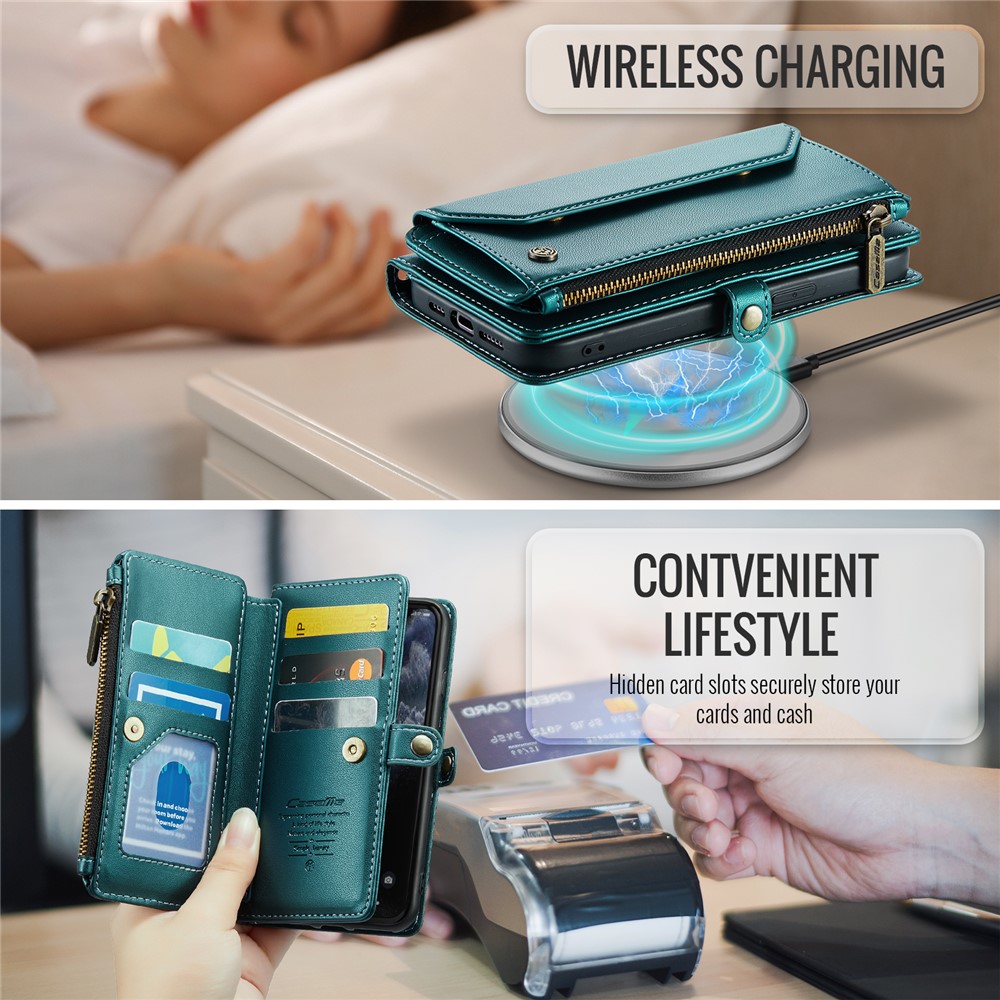 For iPhone 11 Pro Leather Case CASEME C36 Zipper Multiple Card Slots Phone Cover with Straps - Green $25.20
