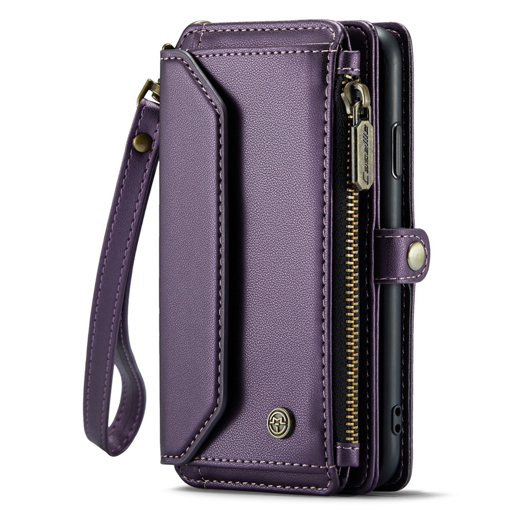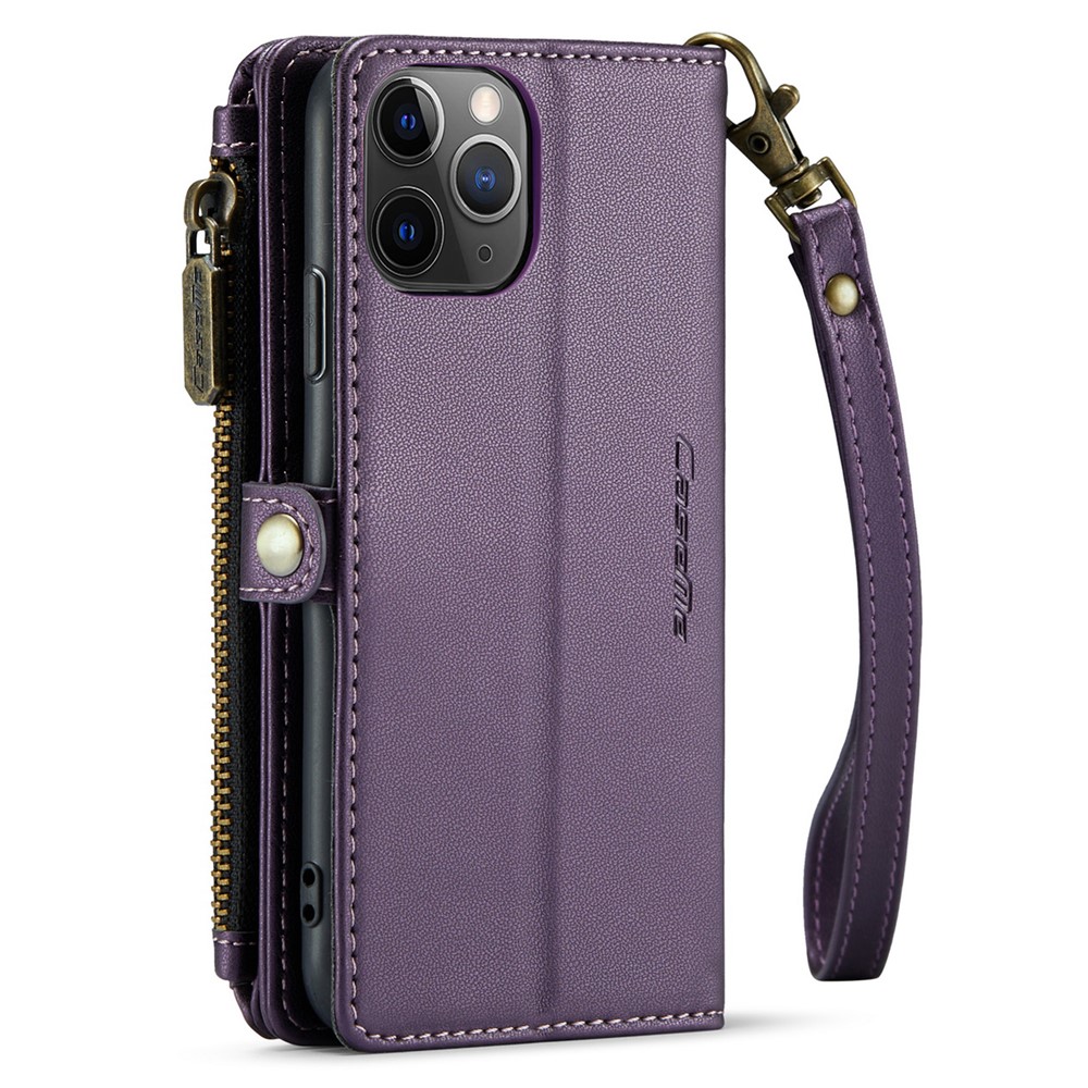 For iPhone 11 Pro Leather Case CASEME C36 Zipper Multiple Card Slots Phone Cover with Straps – Purple