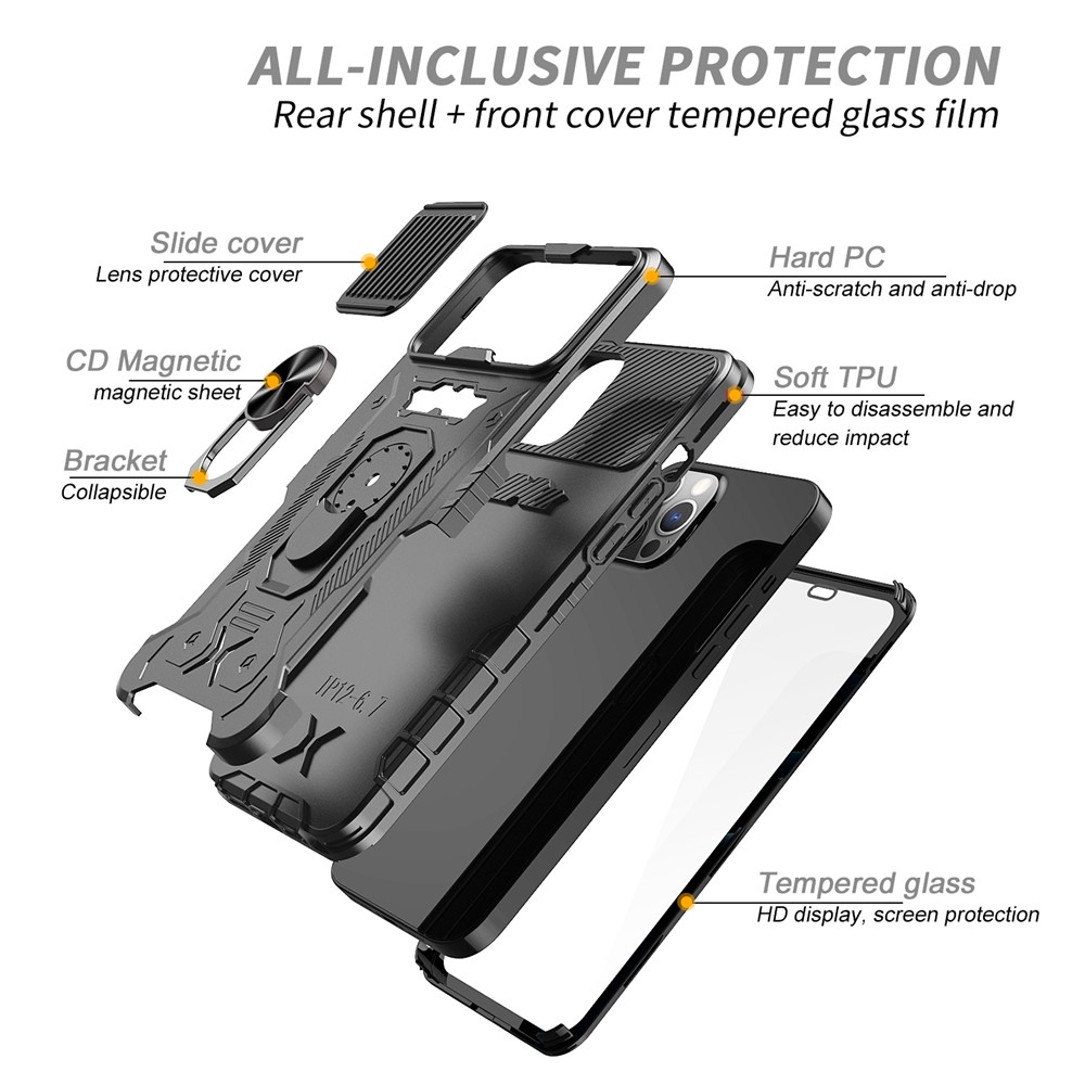 Constructed with tempered glass film, PC, and TPU, this case provide your phone with 360-degree comprehensive protection. Strong hardness tempered glass is anti-scratch, smooth to touch. Built-in magnetic holder metal sheet, the frame is detachable and can be attached together by strong magnetism.