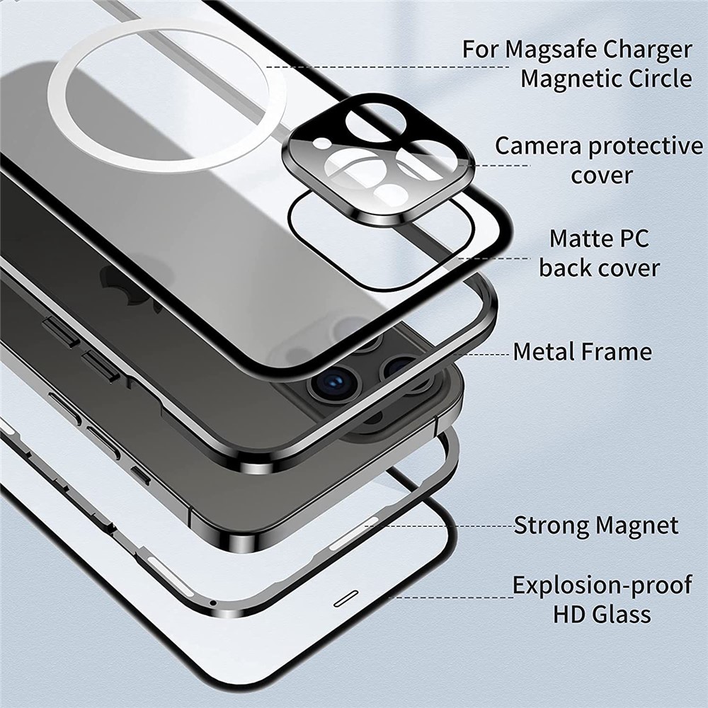 Constructed with a back PC + front tempered glass and a metal frame, this case provides your phone with 360-degree comprehensive protection. Strong hardness tempered glass is anti-scratch and smooth to the touch. Build-in magnet, the metal frame is detachable and can be attached together by strong magnetism.