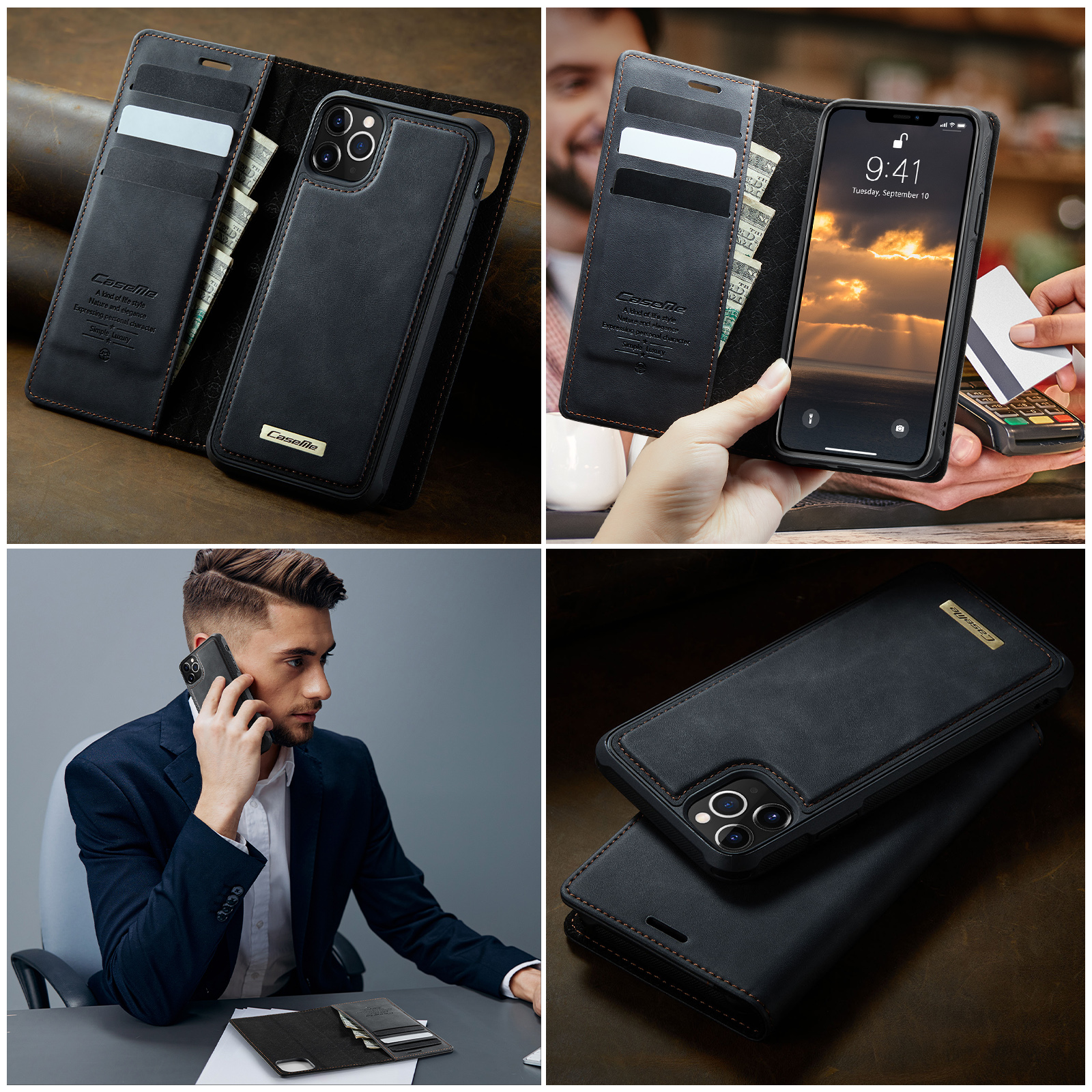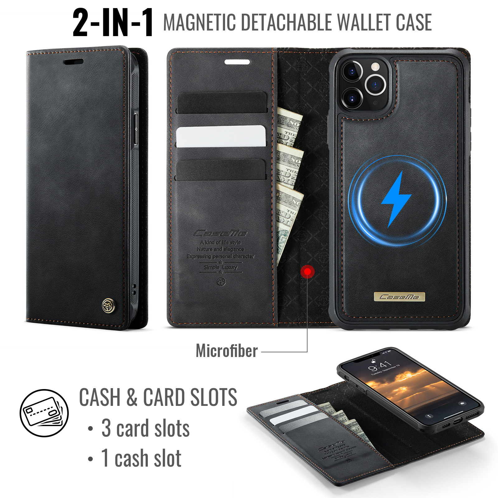 - Magnetic Detachable Wallet Design Built-in 3 card slots, and a cash pocket for credit cards, IDs, and cash. Magnetic detachable 2-in-1 design, can be used as a single shell or as a leather case