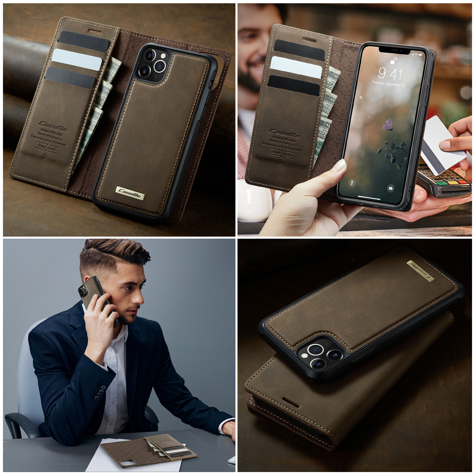 - Magnetic Detachable Wallet Design Built-in 3 card slots, and a cash pocket for credit cards, IDs, and cash. Magnetic detachable 2-in-1 design, can be used as a single shell or as a leather case