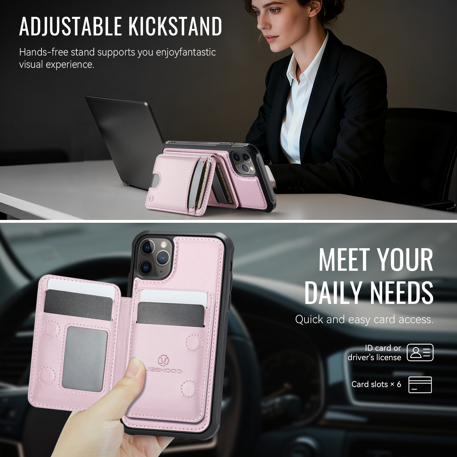 - Multi-Card Design Features 2 card slots on the front, and 4 additional card slots (1 photo slot + 3 card slots) inside for maximum organization.
