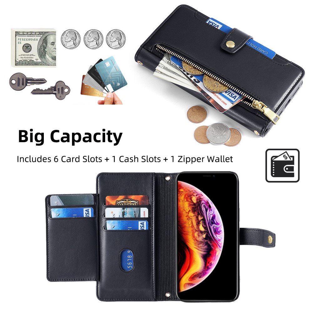 - Massive Storage Capacity Includes 6 card slots, 1 cash pocket, and 1 zippered coin wallet—ideal for organizing cards, bills, coins, and small essentials