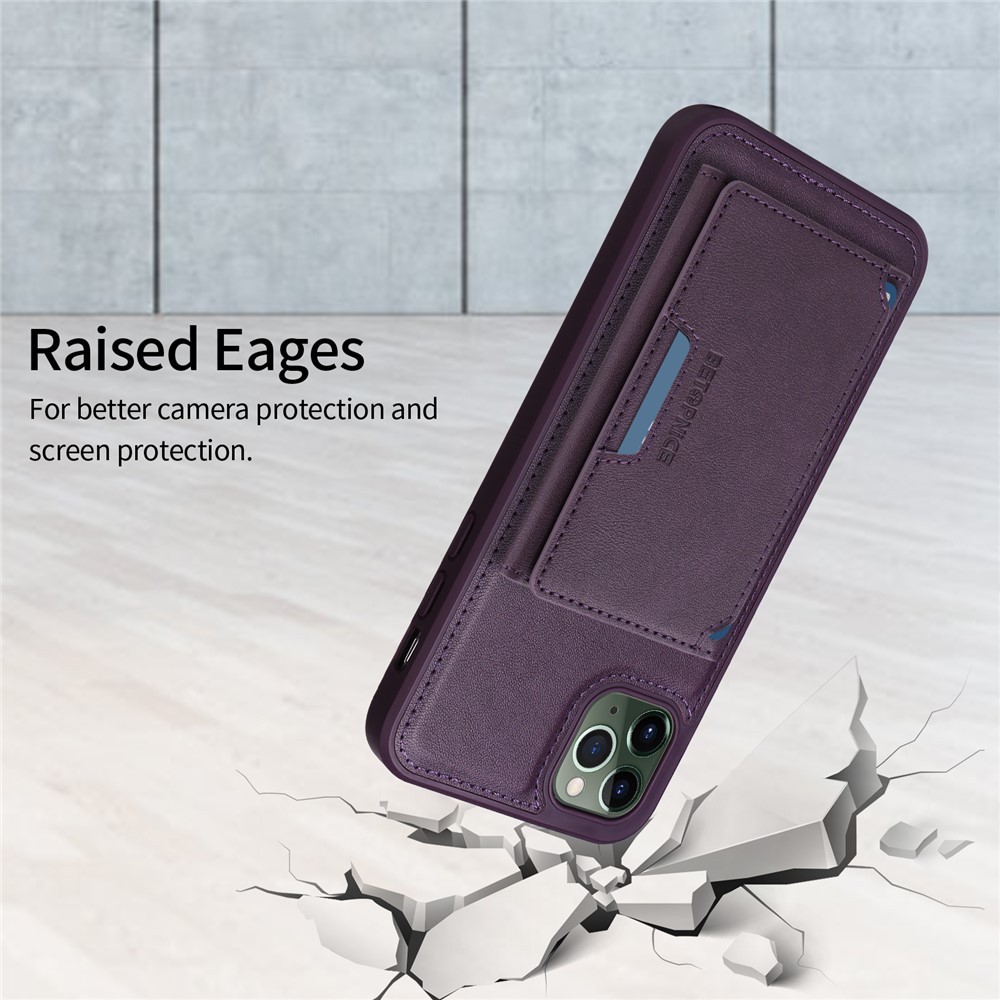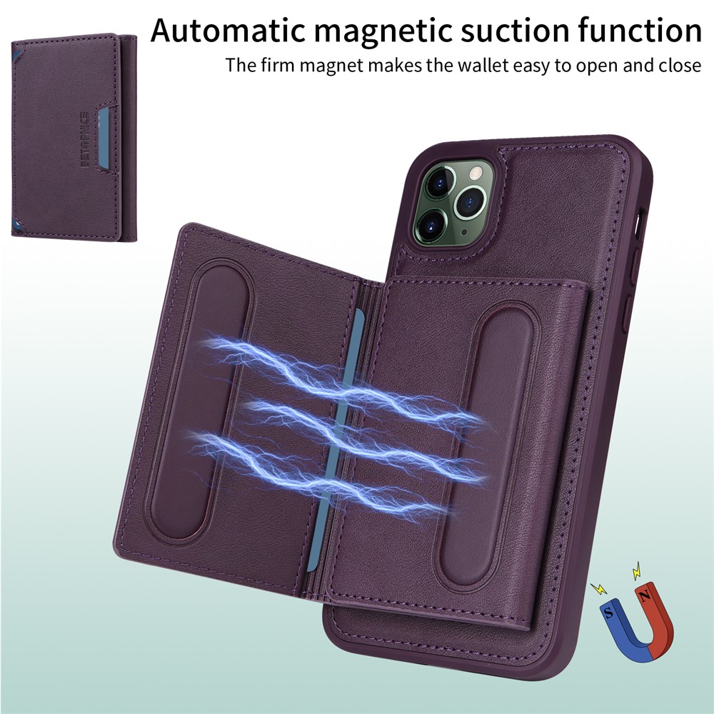 For iPhone 11 Pro Max Magnetic Case BETOPNICE Leather Phone Cover Kickstand with Detachable Card Bag – Purple