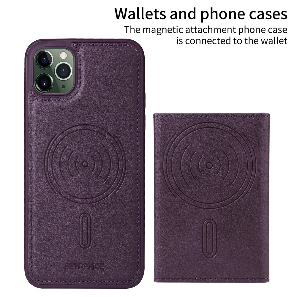 For iPhone 11 Pro Max Magnetic Case BETOPNICE Leather Phone Cover Kickstand with Detachable Card Bag - Purple