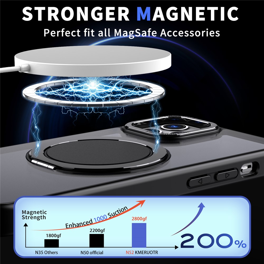 - Built-in Strong Magnet Features a powerful built-in magnet that is Mag-Safe compatible, supporting wireless charging. The strong magnetic attraction ensures stable and efficient wireless charging without needing to remove the case