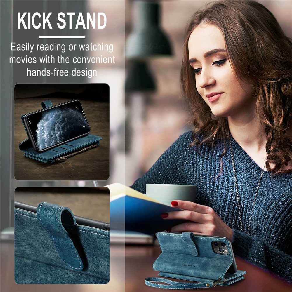 - Large Zipper Space Smoother, softer, and bigger space with the unique zipper design. Ideal for bills, cash, coins, and credit cards. The zipper won’t scratch the phone screen