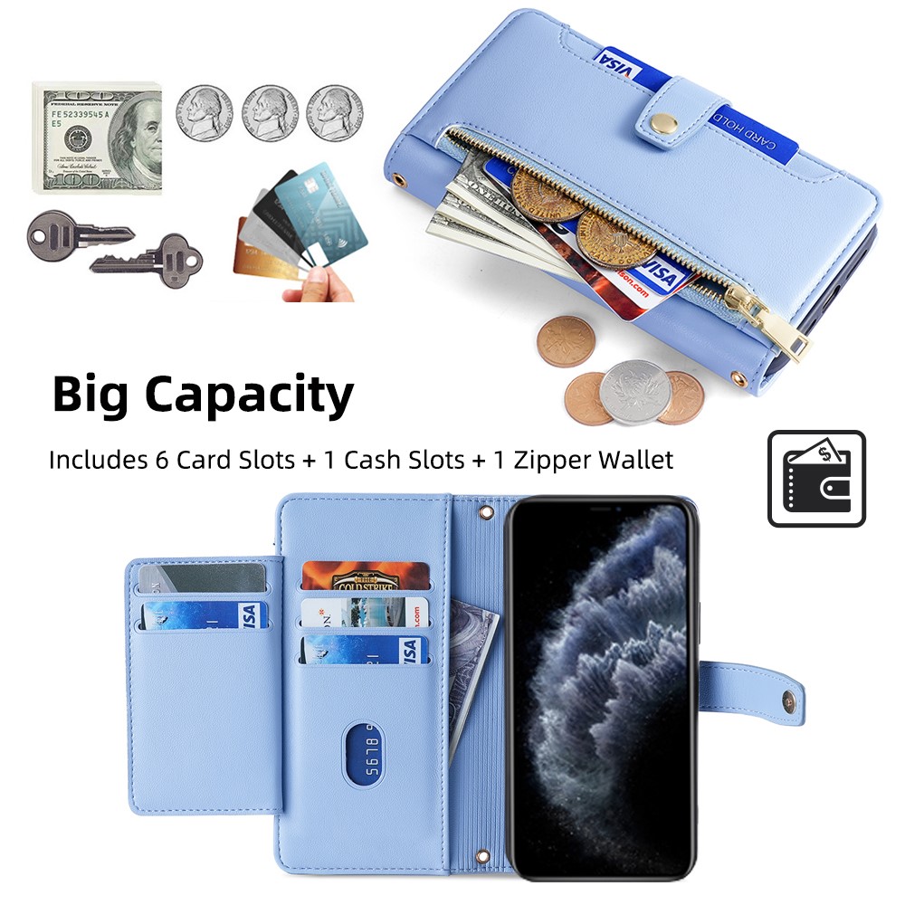 - Massive Storage Capacity Includes 6 card slots, 1 cash pocket, and 1 zippered coin wallet—ideal for organizing cards, bills, coins, and small essentials