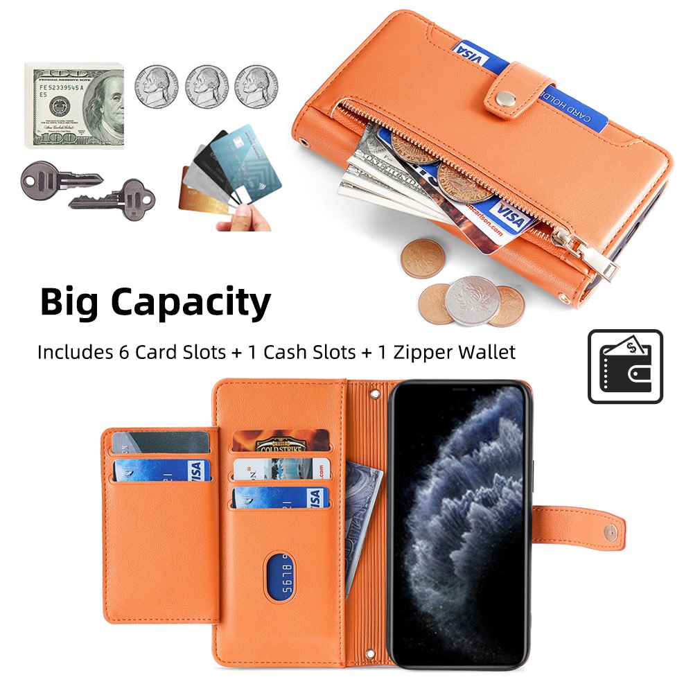 - Massive Storage Capacity Includes 6 card slots, 1 cash pocket, and 1 zippered coin wallet—ideal for organizing cards, bills, coins, and small essentials