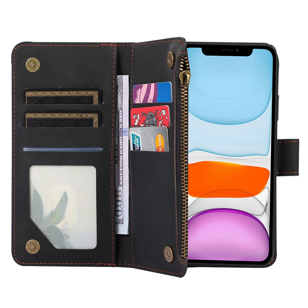 - 9 Card Slots & Cash Compartments Holds 9 cards, 2 cash pockets, and a zippered section for convenient daily storage