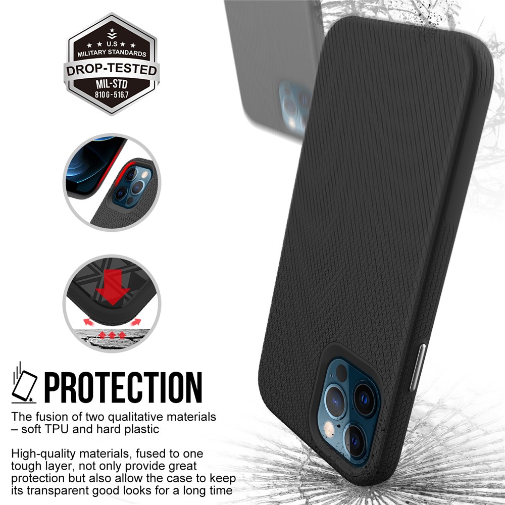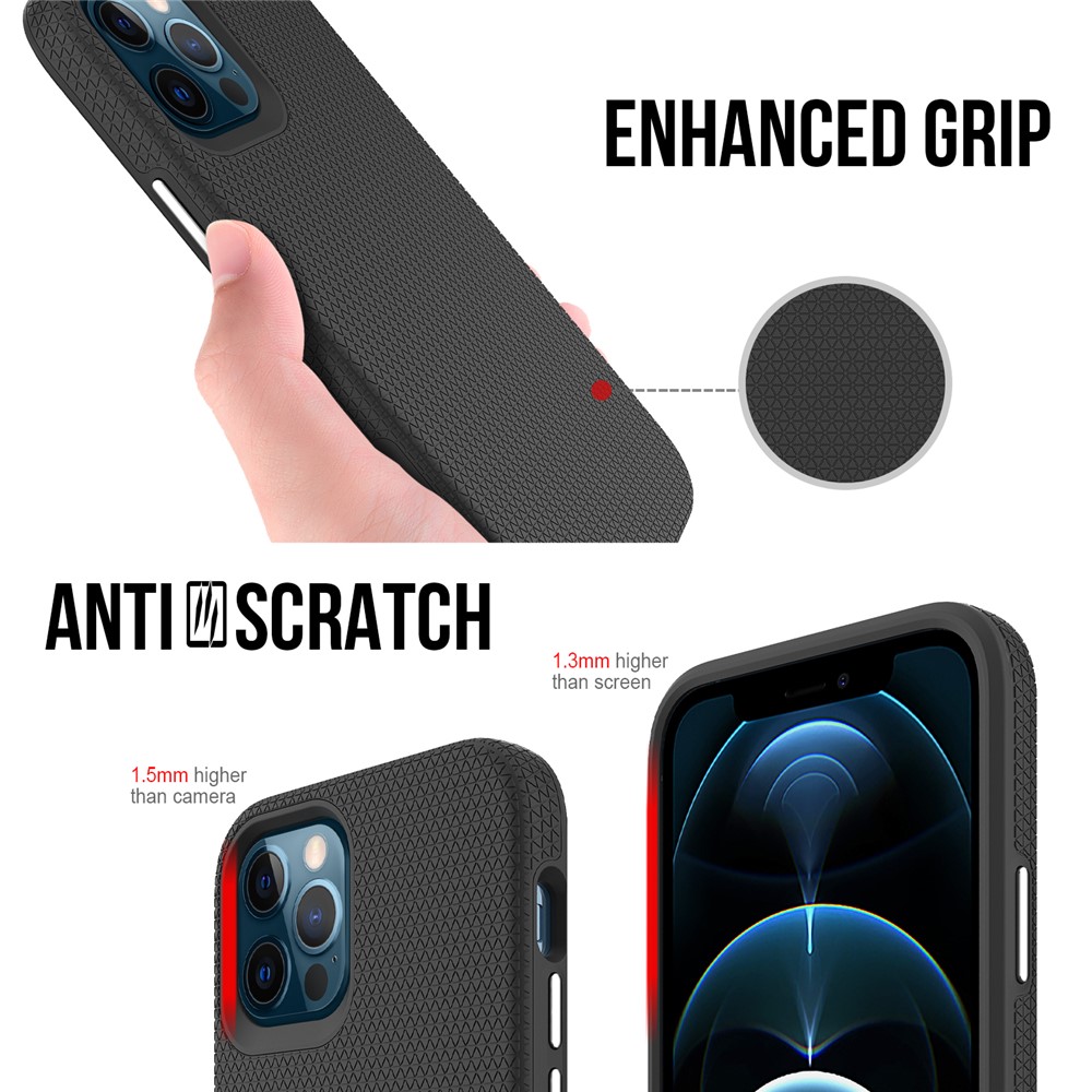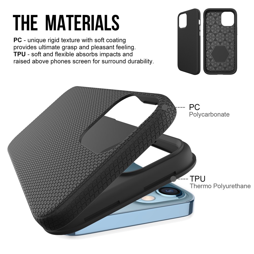 - TPU Bumper Layer: soft and flexible absorbs impacts and is raised above the phone screen for surround durability