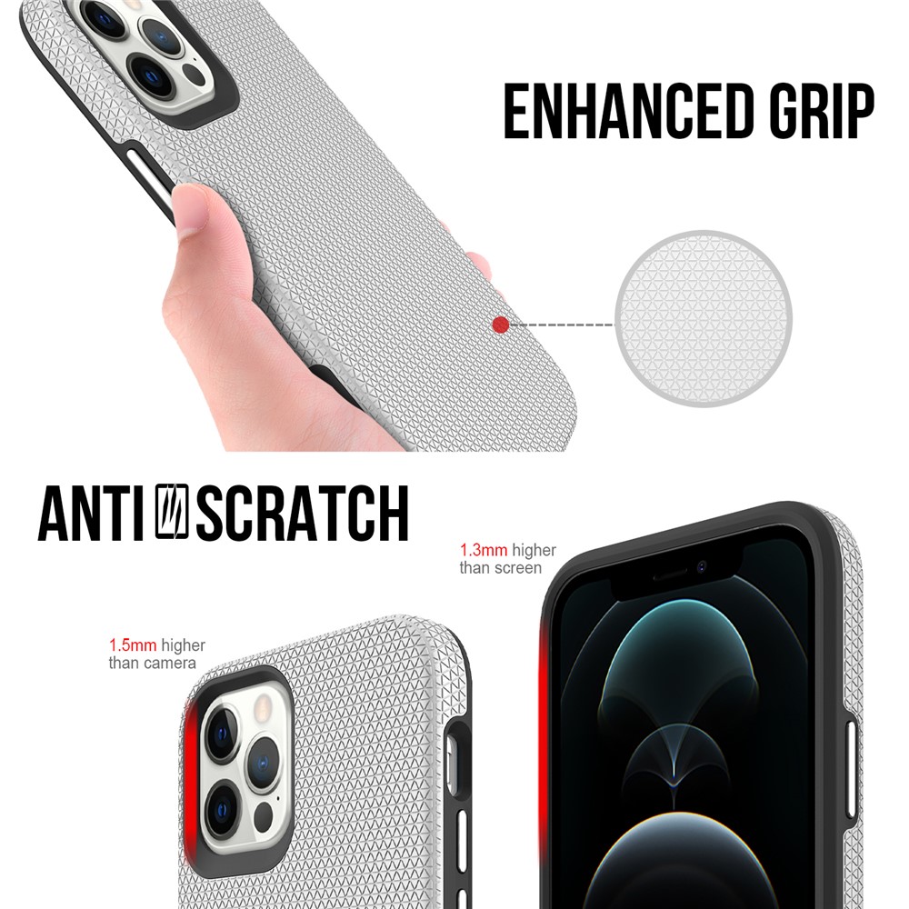 - TPU Bumper Layer: soft and flexible absorbs impacts and is raised above the phone screen for surround durability