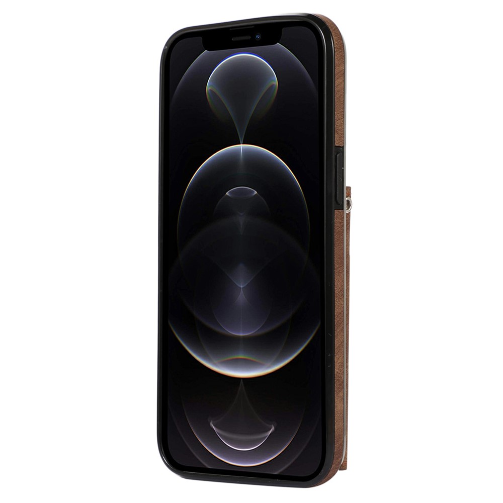 For iPhone 12 / 12 Pro 6.1 inch PU Leather+TPU Phone Case Kickstand Cover with RFID Blocking Card Bag – Brown