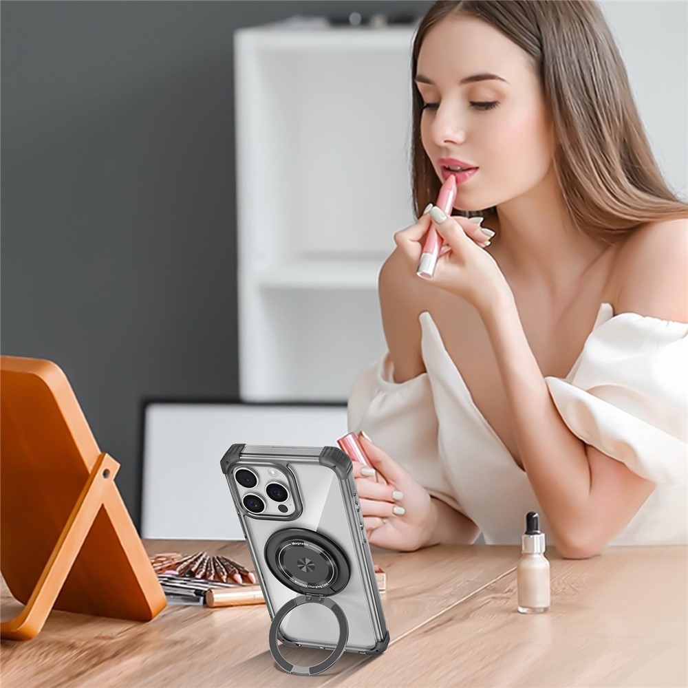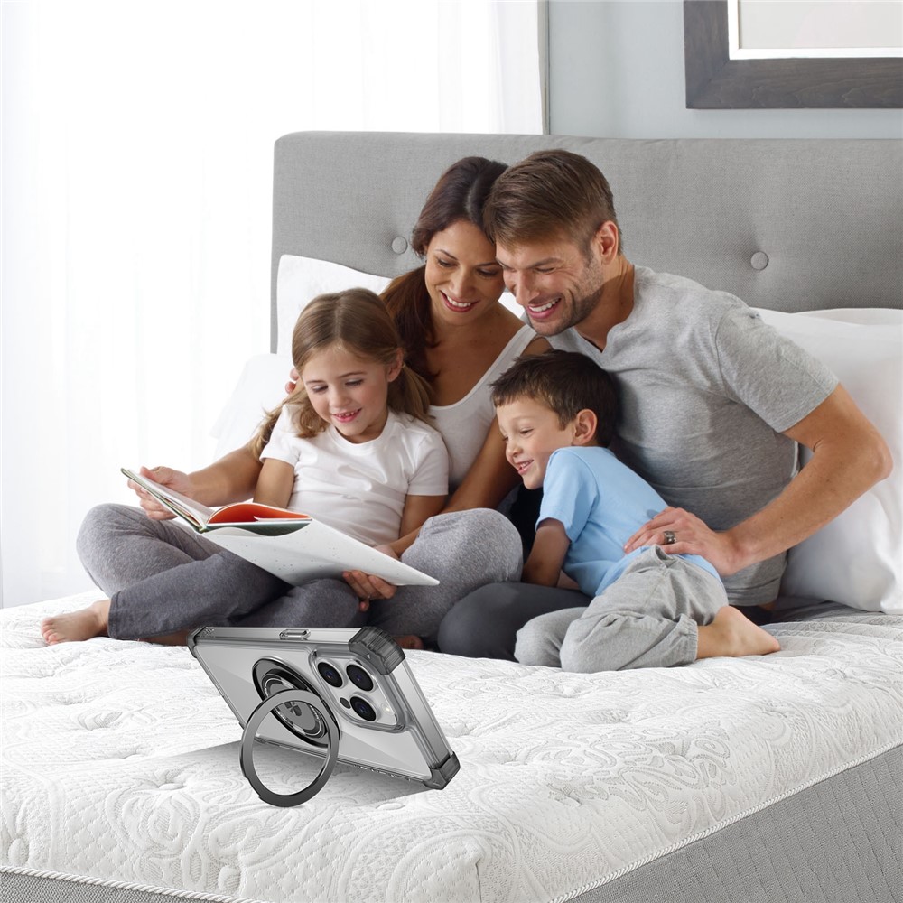 - Rotary ring holder kickstand for easy one-hand operation and convenient hands-free viewing
