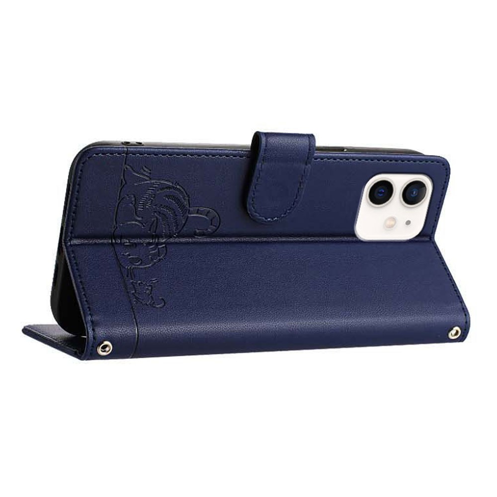 For iPhone 12 / 12 Pro Case with Strap RFID Blocking Leather Wallet Phone Cover Cat Mouse Pattern - Sapphire $16.71