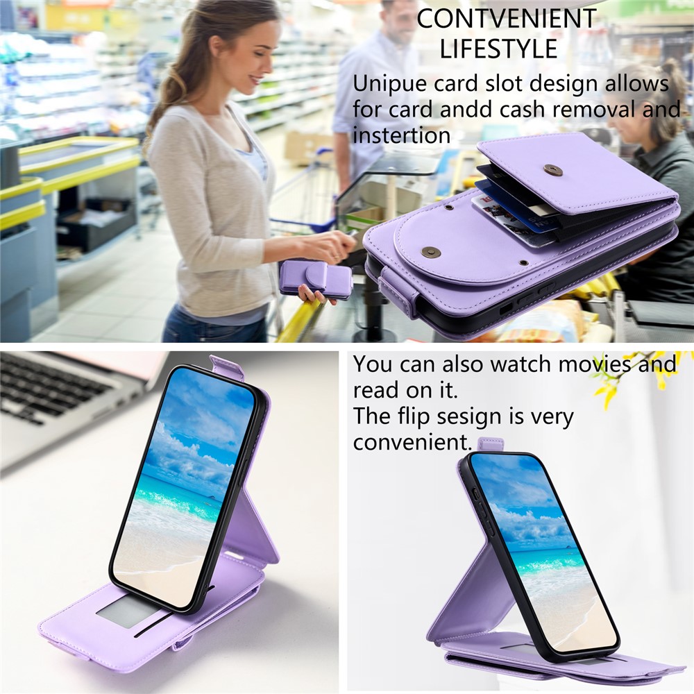 - Vertical-flip type phone case, opens down for easy operation with one hand