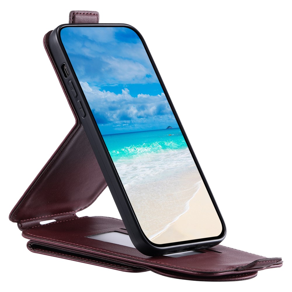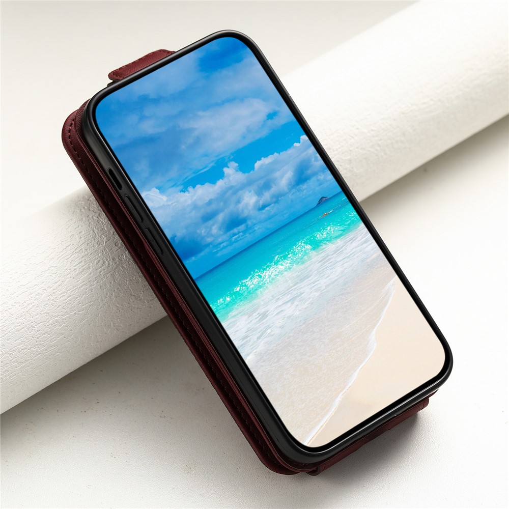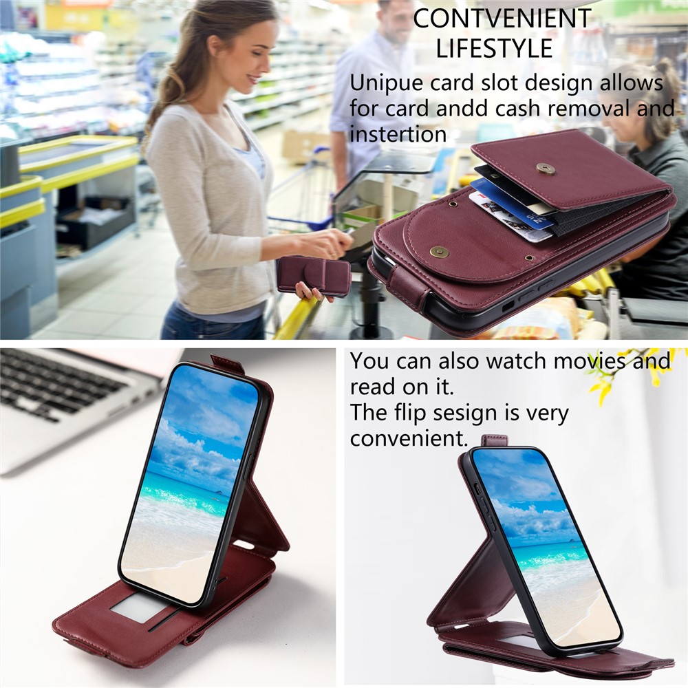 - Vertical-flip type phone case, opens down for easy operation with one hand