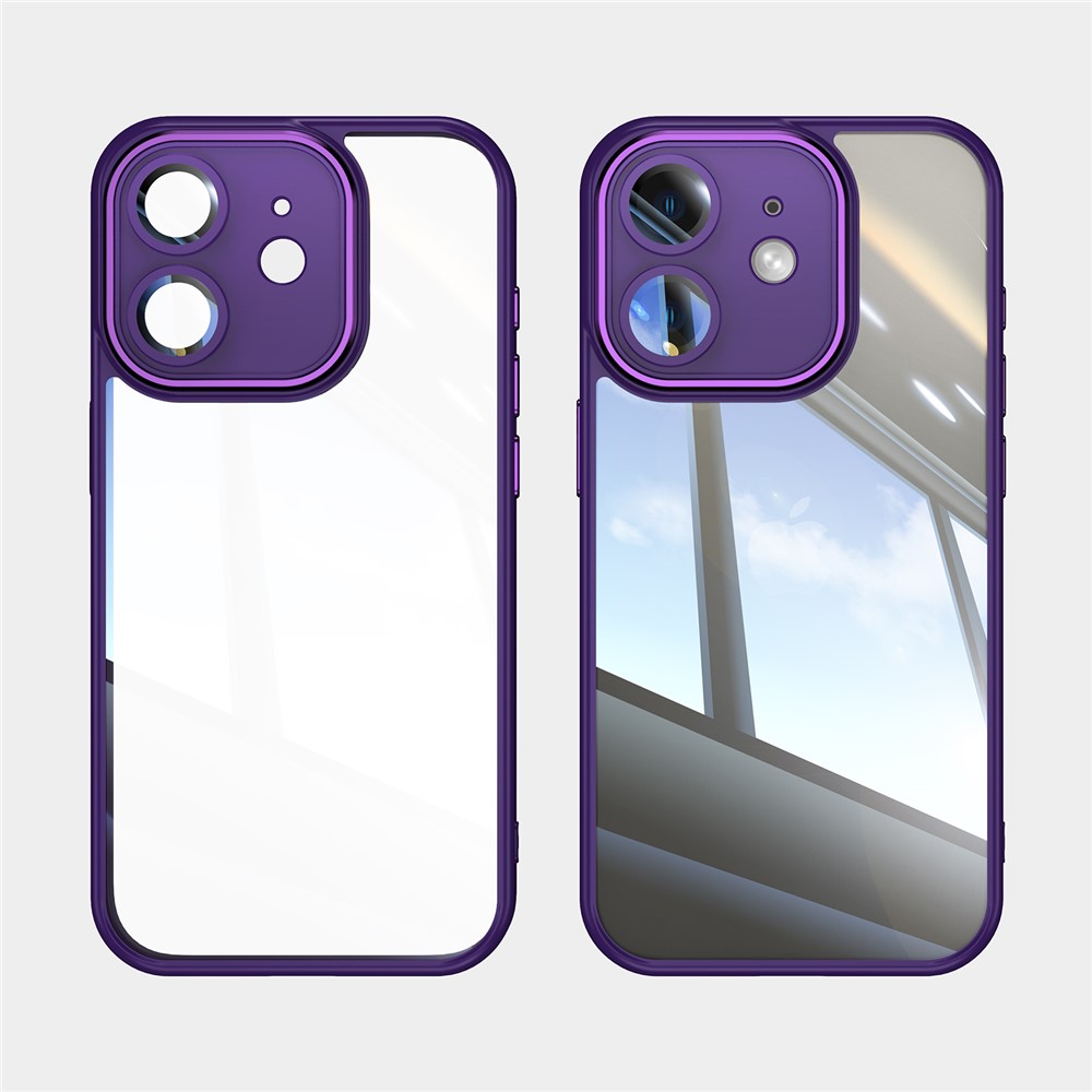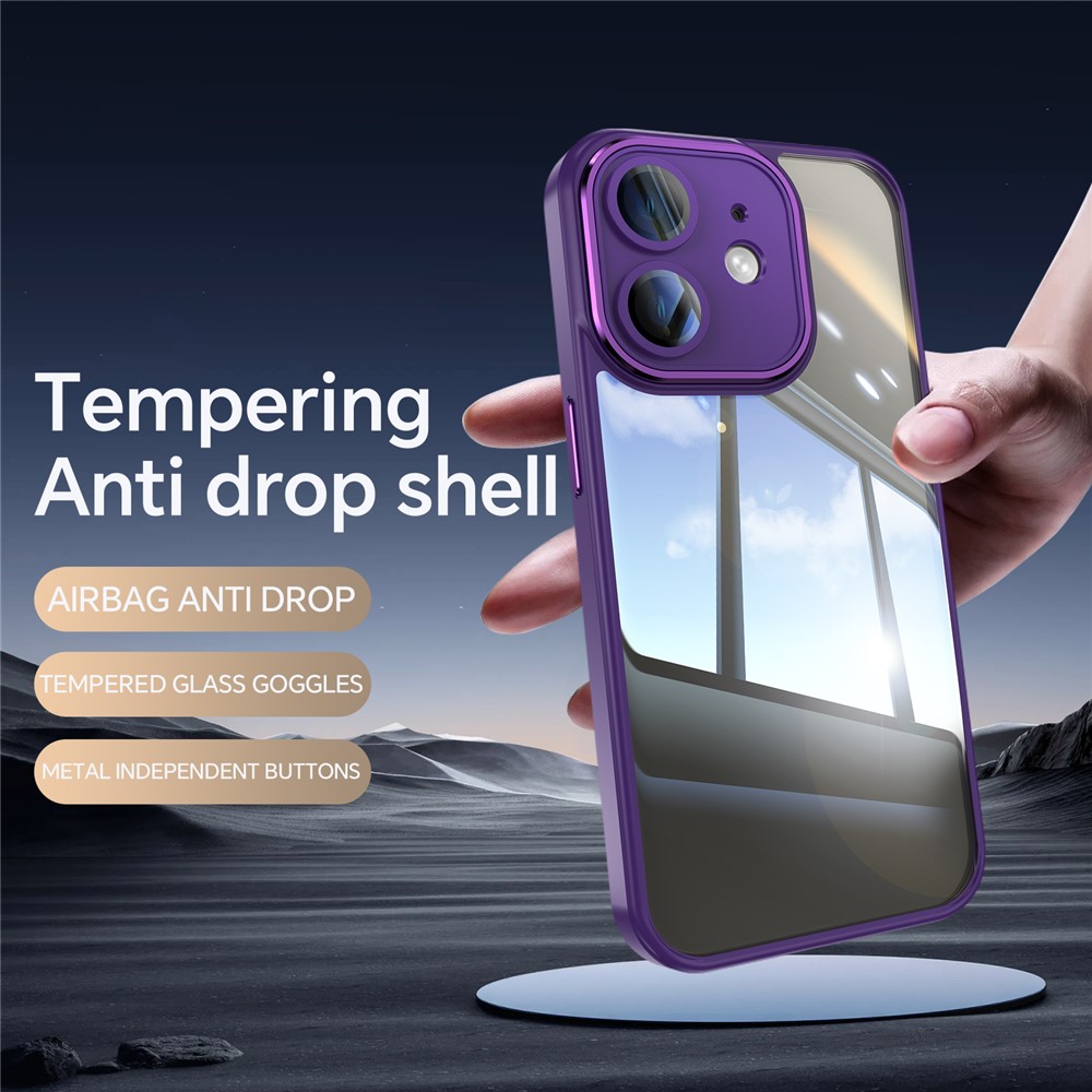 For iPhone 12 6.1 inch TPU Case WANLONFENG Shockproof Clear Phone Cover with Tempered Glass Film – Dark Purple
