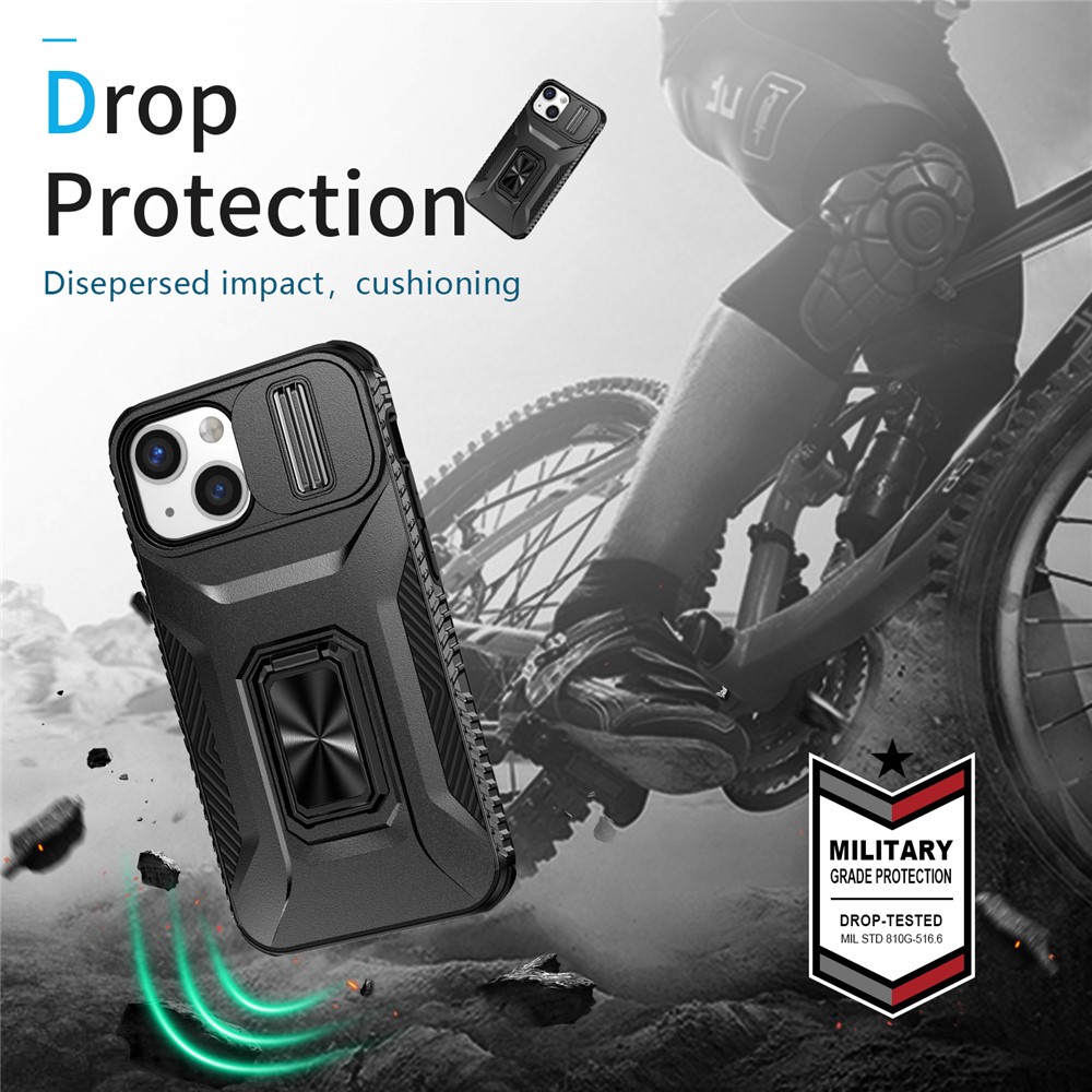 - Designed with a metal ring kickstand for horizontal and vertical screen supports
