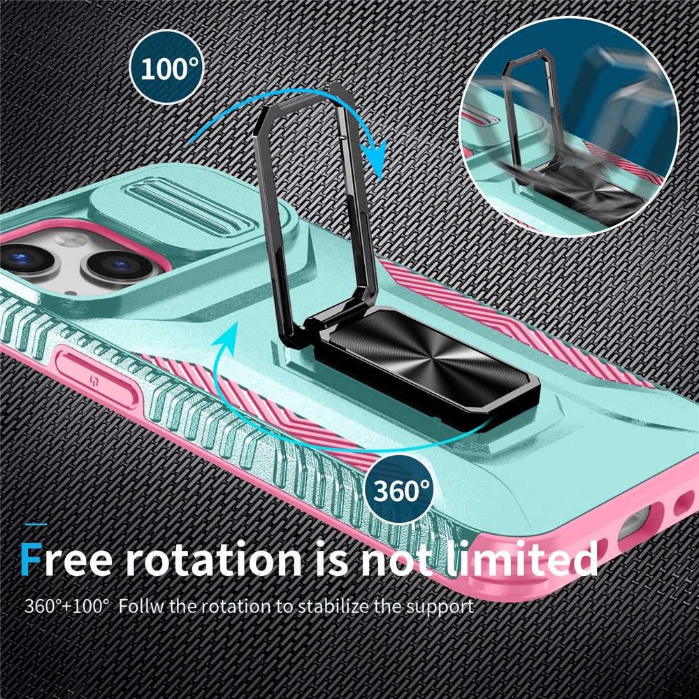 - Designed with a metal ring kickstand for horizontal and vertical screen supports