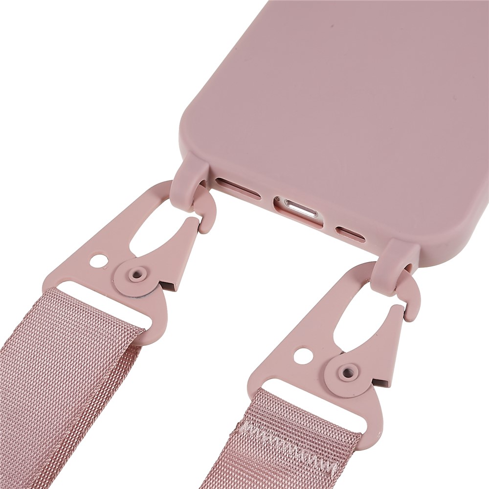 For iPhone 12 mini 5.4 inch Matte Surface Soft Skin Flexible TPU Anti-Scratch Protective Phone Case with Shoulder Strap – Deep Pink