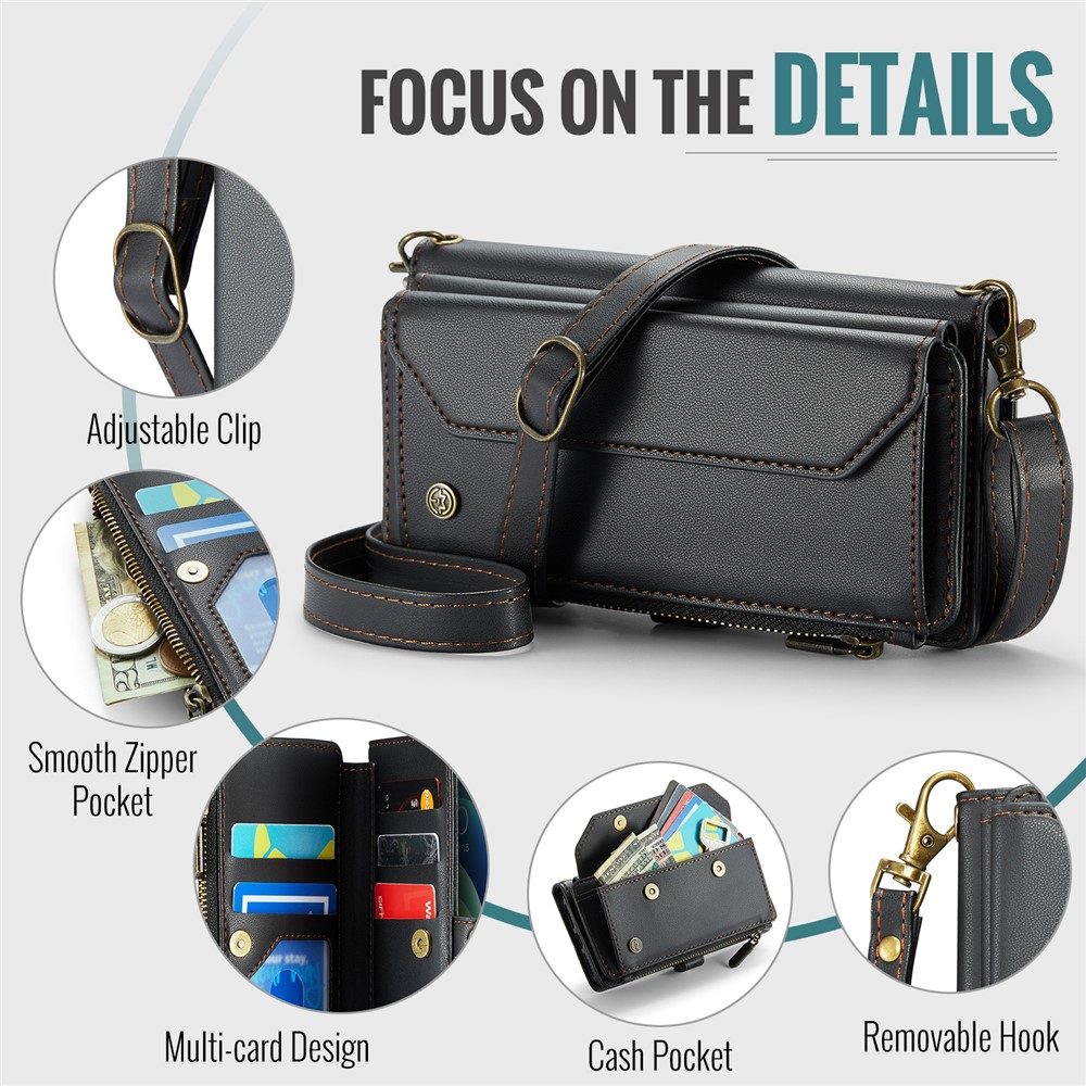 For iPhone 12 mini Leather Case CASEME C36 Zipper Multiple Card Slots Phone Cover with Straps - Black $25.10