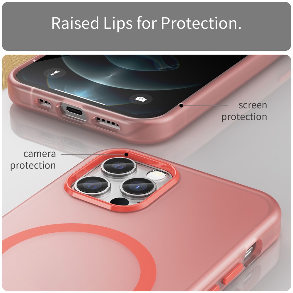 - MagSafe Compatible Built-in magnetic ring compatible with MagSafe wireless charging, while raised edges protect the camera lens on flat surfaces