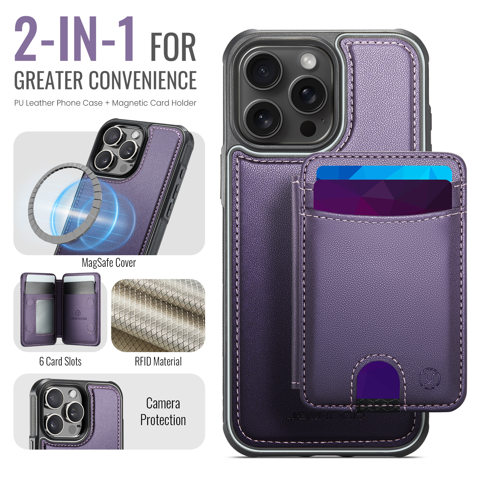 - Multi-Card Design Features 2 card slots on the front, and 4 additional card slots (1 photo slot + 3 card slots) inside for maximum organization.