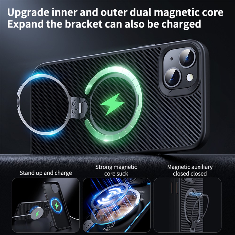 - 360° Rotating Ring Kickstand Equipped with a 360° rotating ring kickstand, it provides hands-free convenience for watching videos and video chatting, allowing you to enjoy your phone without holding it