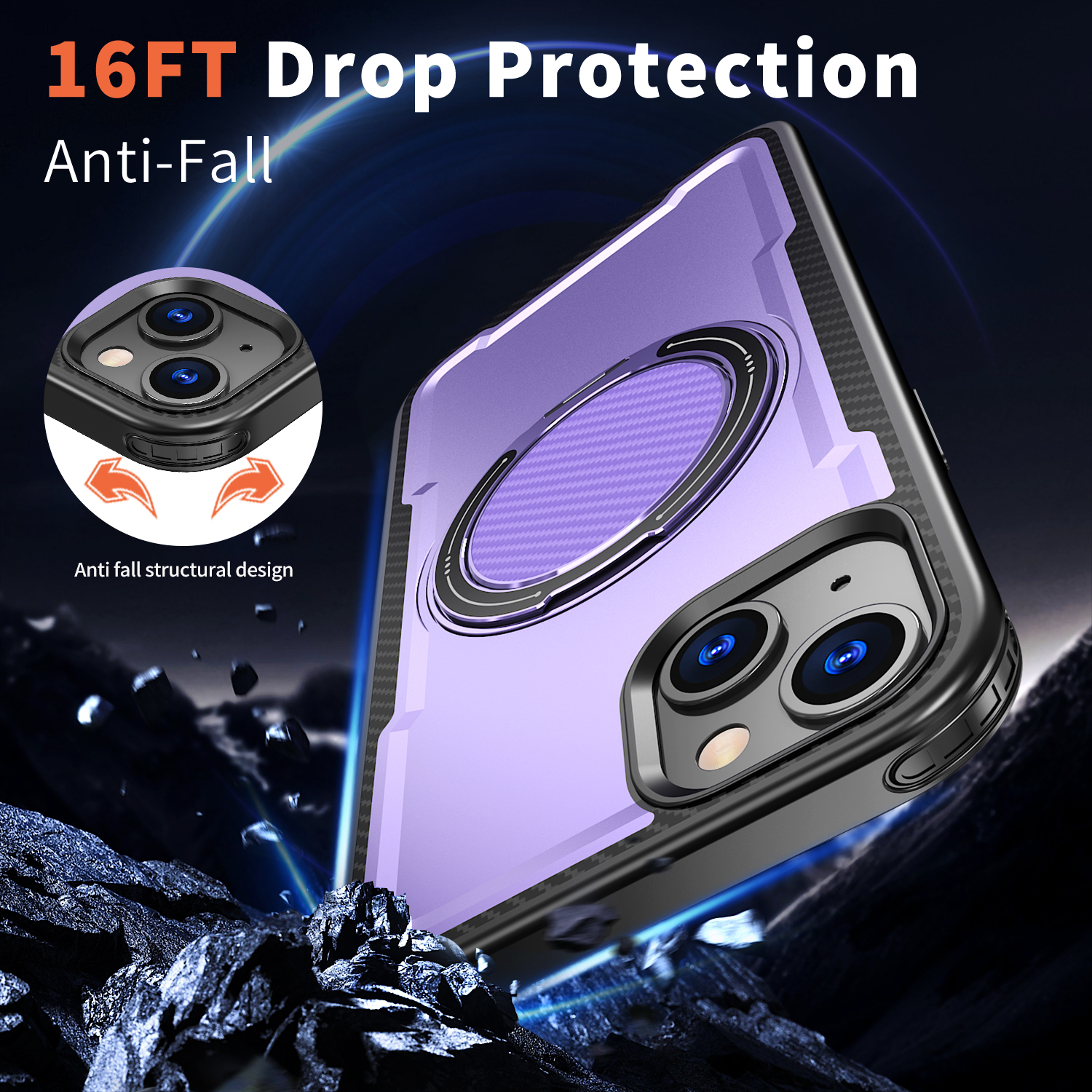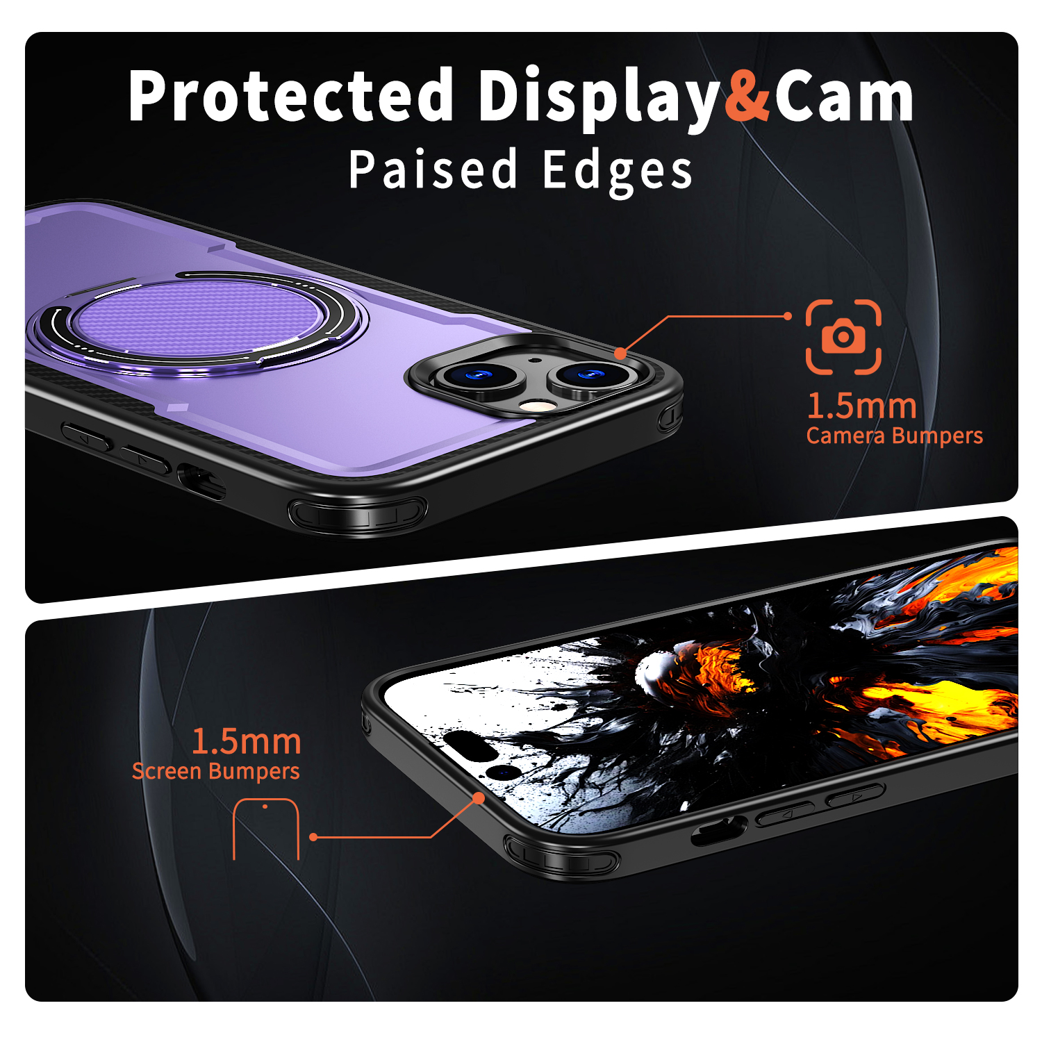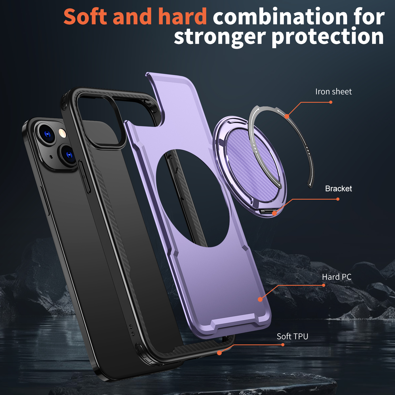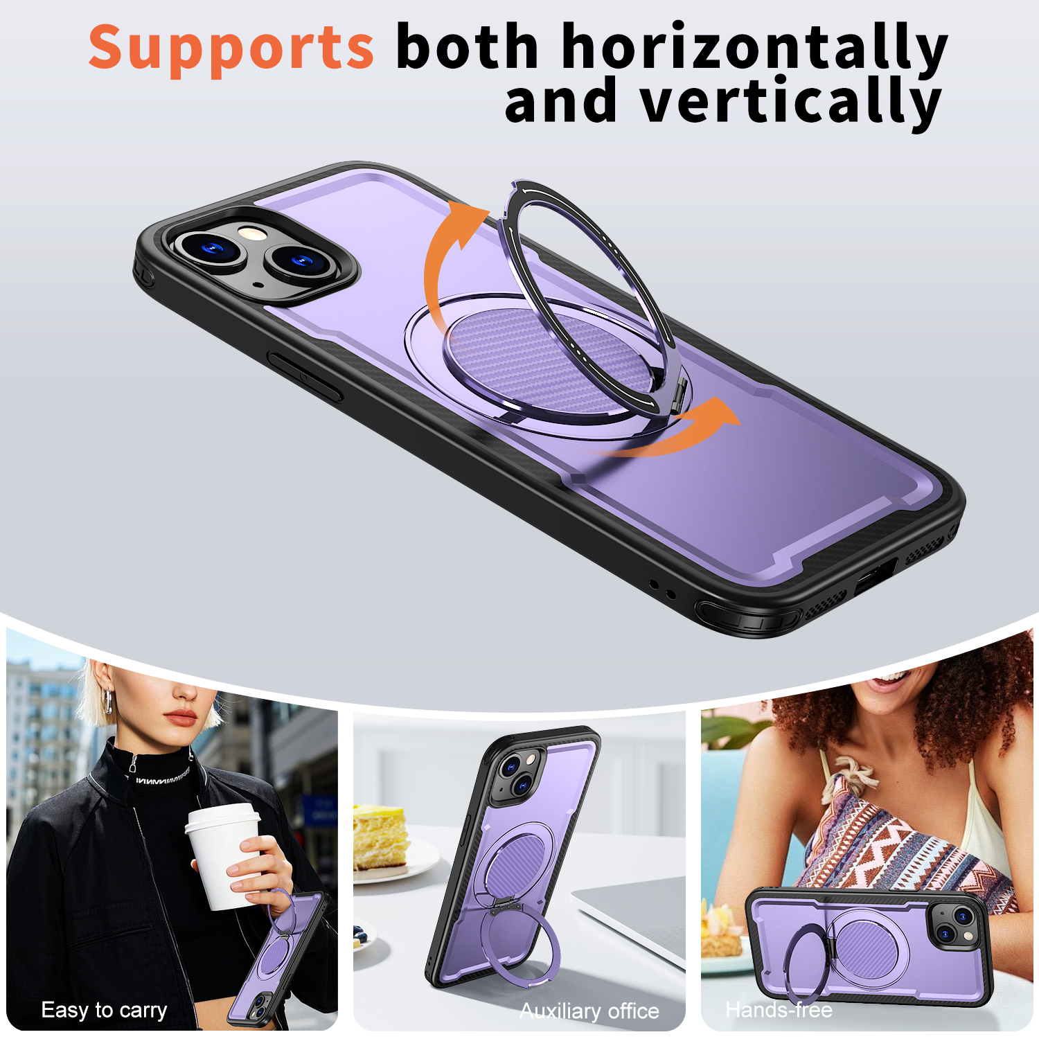 For iPhone 13 Case Compatible with MagSafe TPU + PC Phone Cover with Damping Rotating Stand – Purple