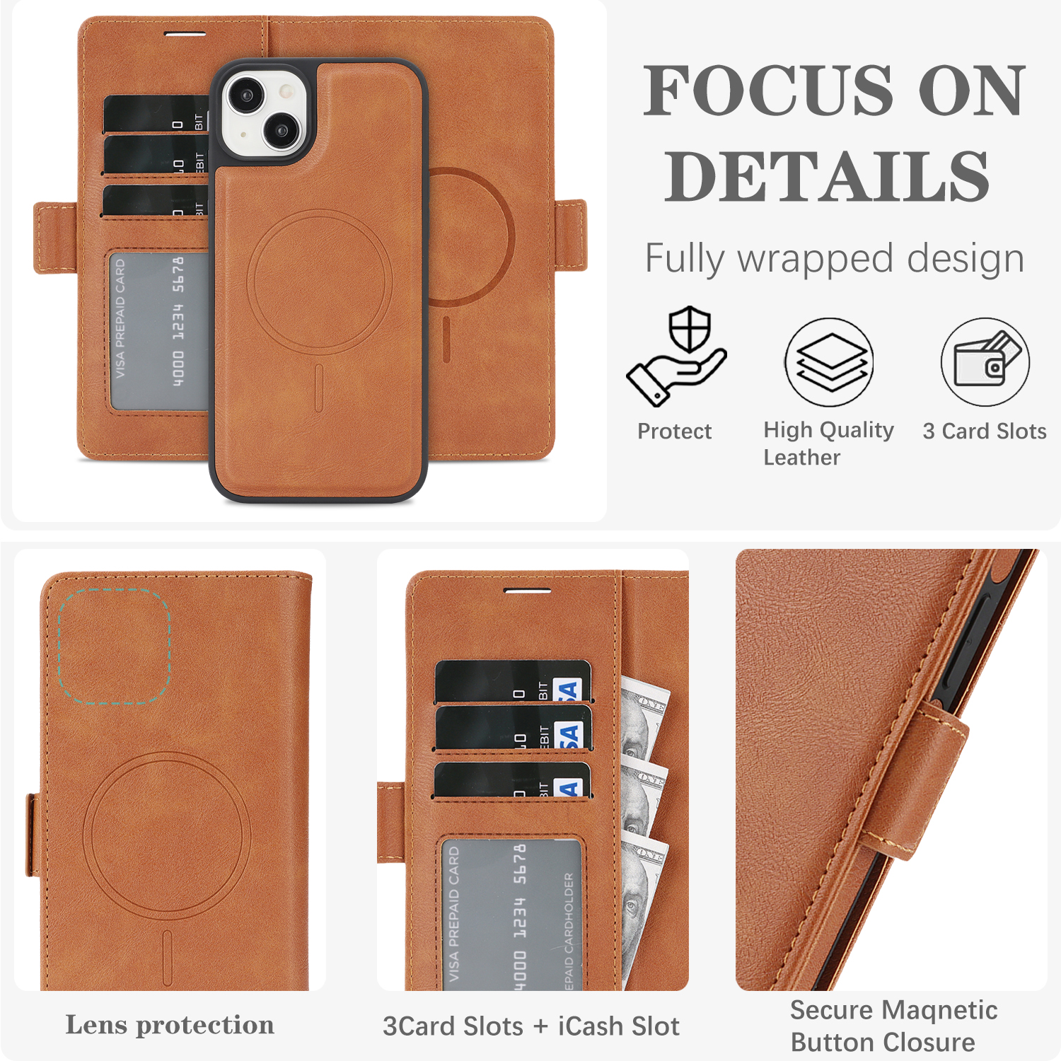 - Premium Magnetic System Both the phone case and wallet feature high-performance N52 ring magnets, ensuring a secure connection and easy detachment when needed.