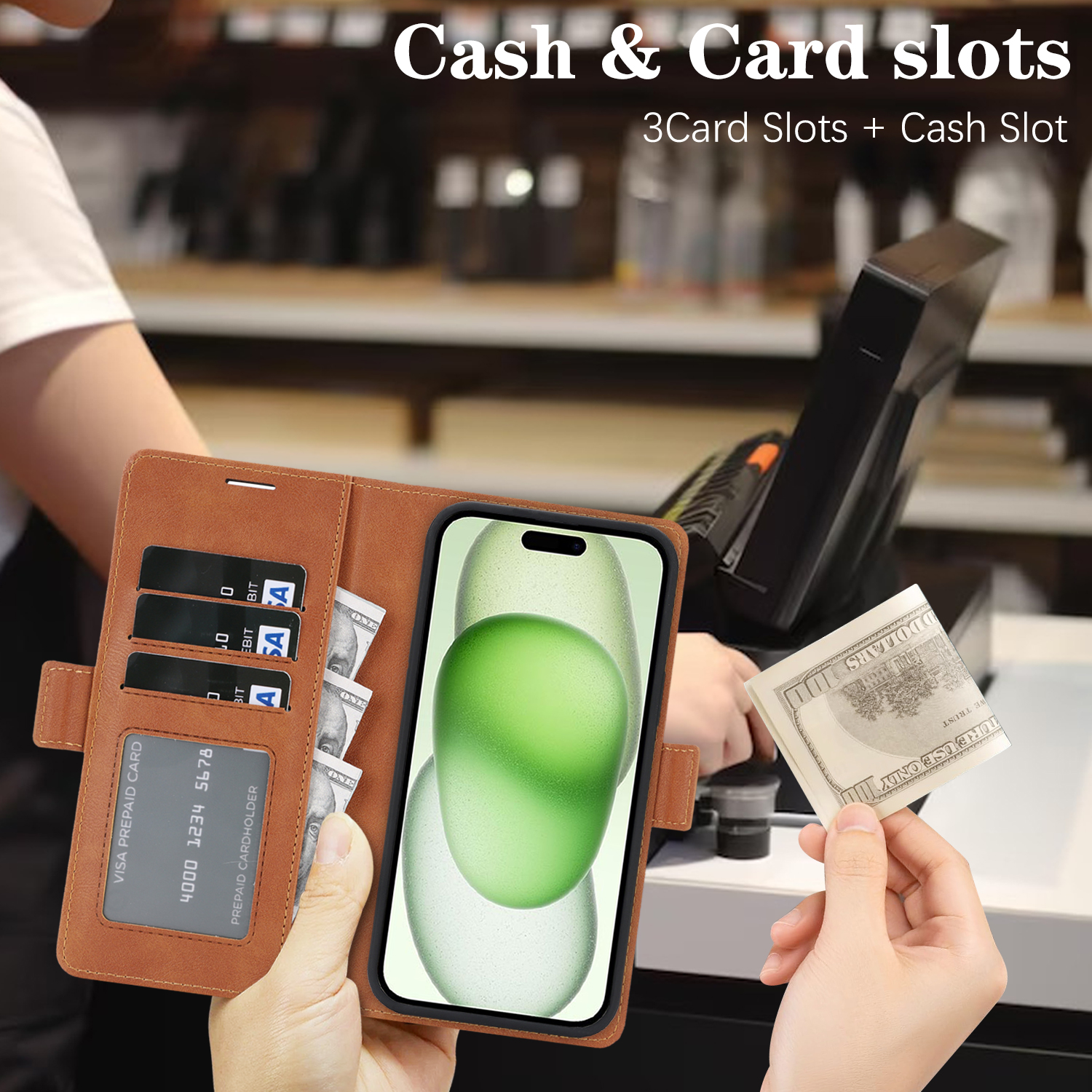 - Multiple Card Slots Convenient storage for ID cards, credit cards, driver’s licenses, or cash in the wallet section.