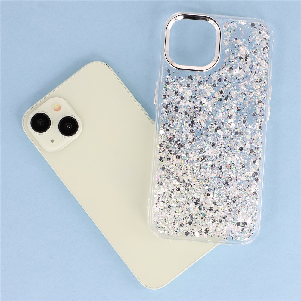 For iPhone 13 Case Epoxy Design Electroplating Soft TPU Phone Back Cover Large Lens Cutout
