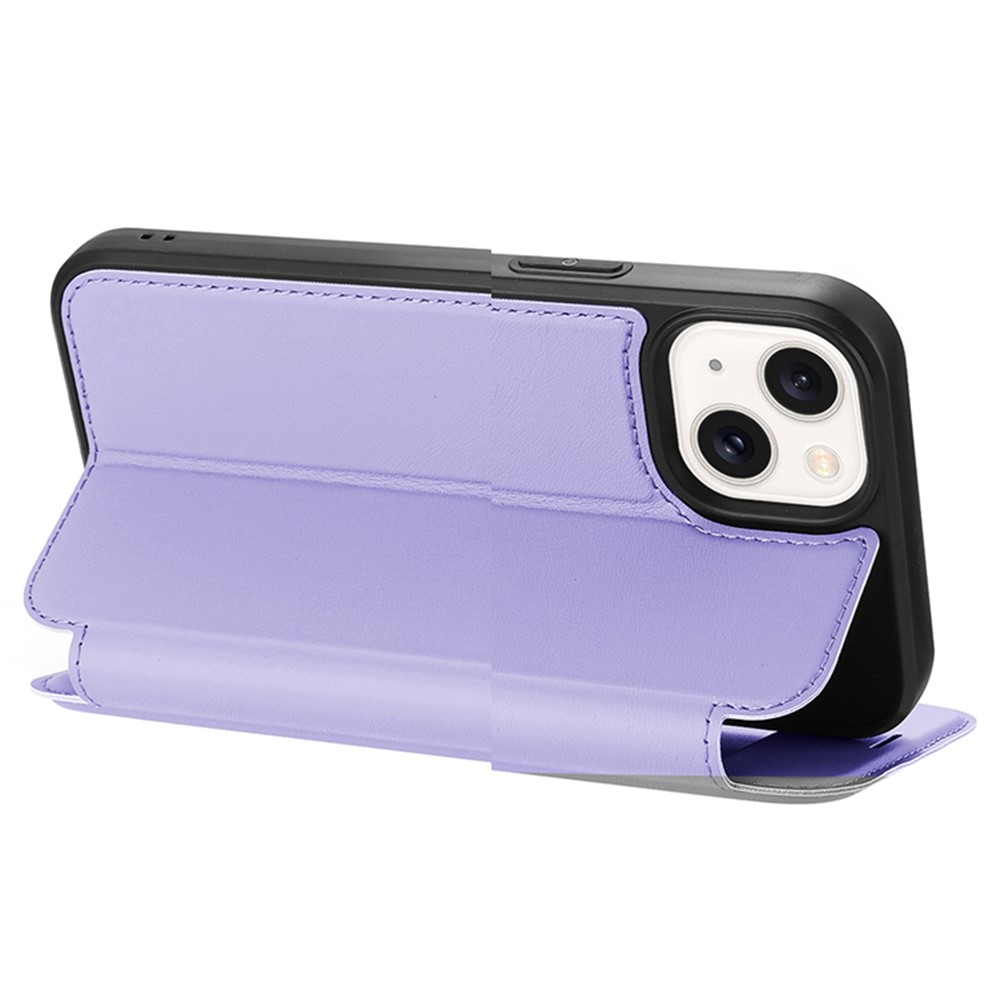 For iPhone 13 Case Magnetic Closure Card Slot Leather Flip Phone Cover - Purple