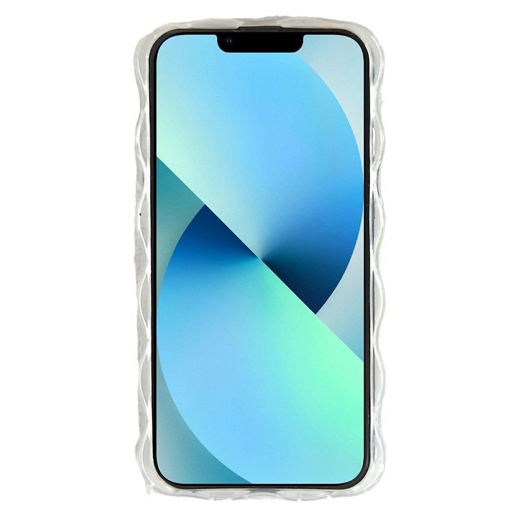 For iPhone 13 Case Oil Painting Flower Pattern TPU Phone Cover with Curly Wave Frame