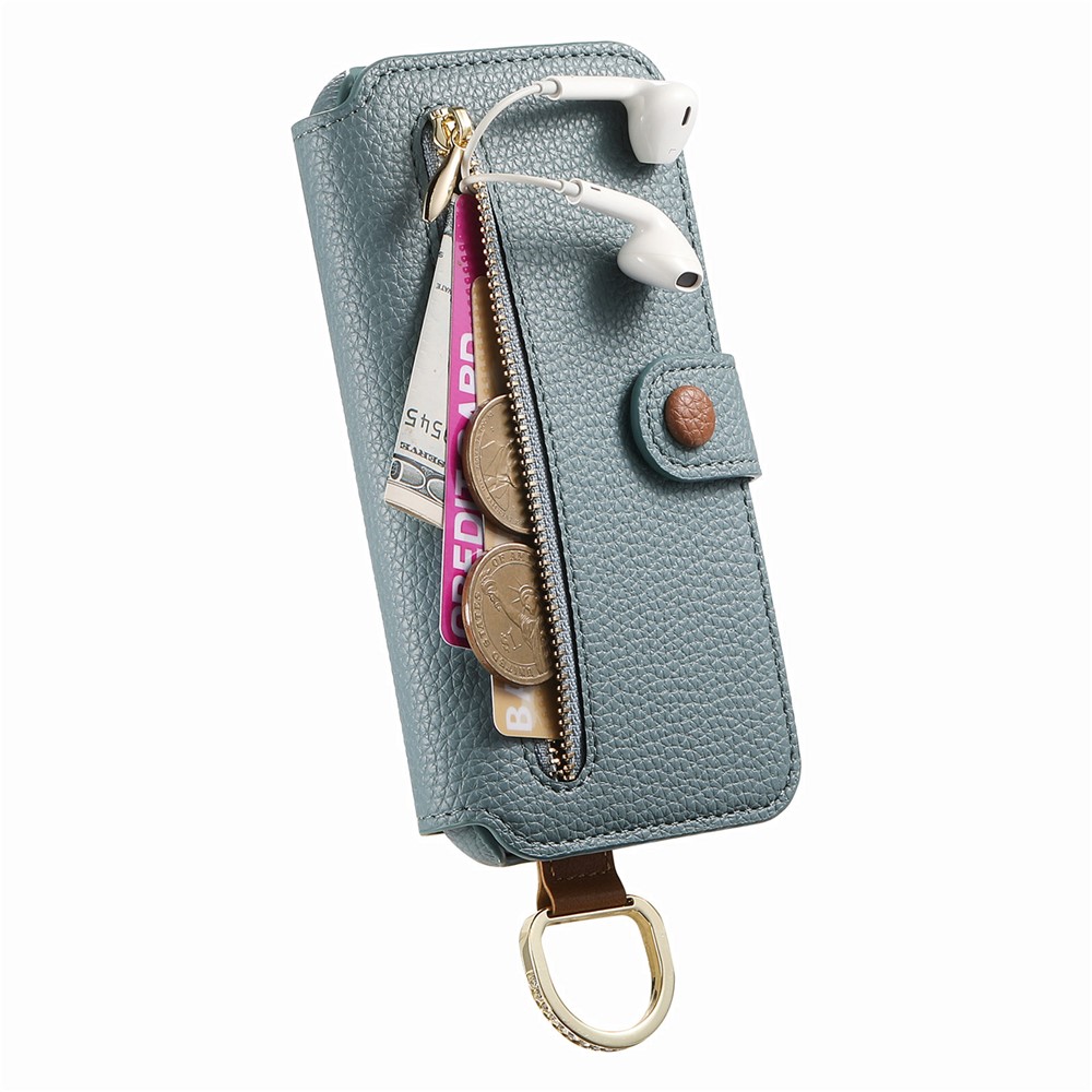 For iPhone 13 Case RFID Blocking Zipper Wallet PU Leather Mobile Cover - Blue $20.44