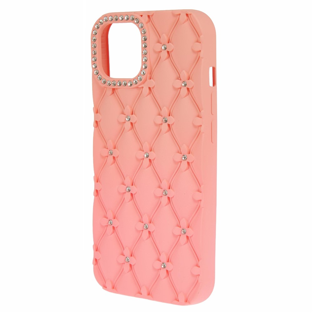 For iPhone 13 Case Rhinestone Decor Rubberized TPU Phone Cover – Pink + Rose