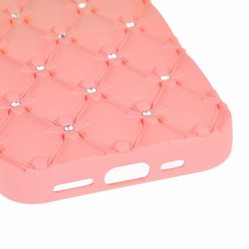 For iPhone 13 Case Rhinestone Decor Rubberized TPU Phone Cover - Pink + Rose $15.19