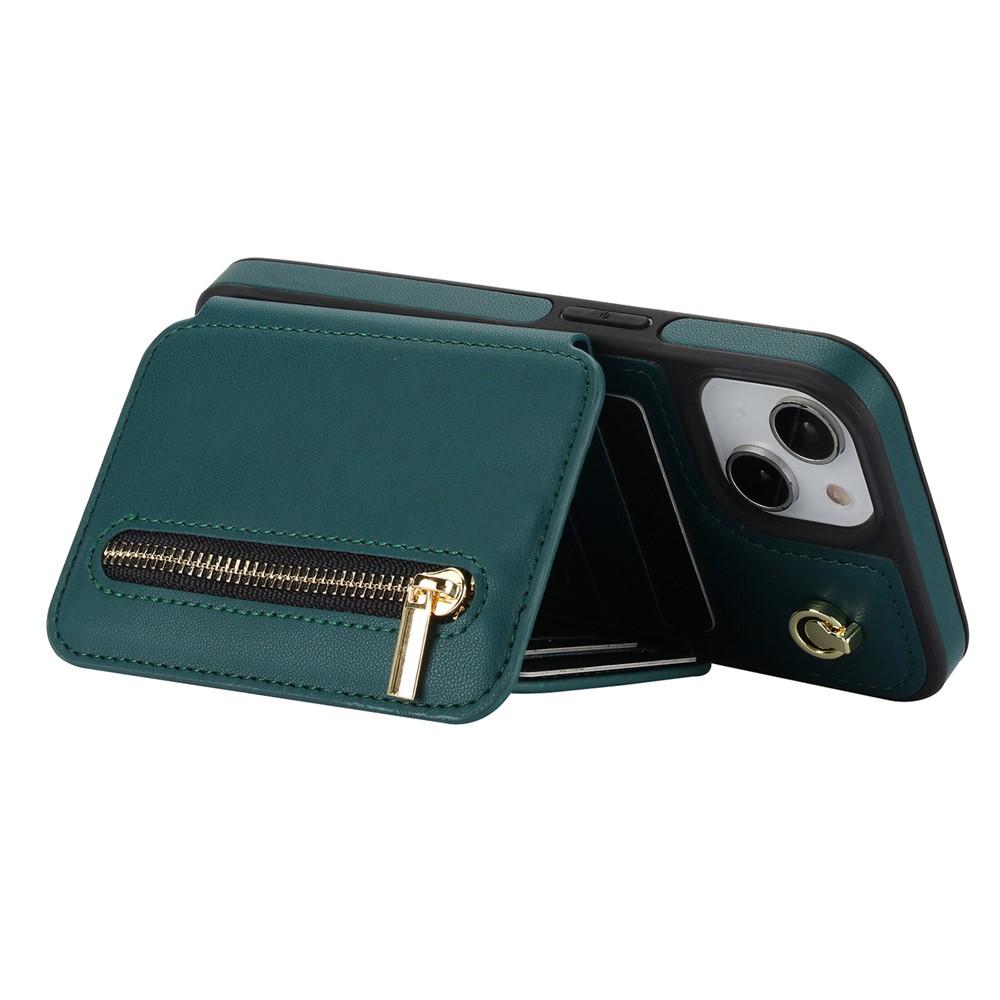 - A zipper pocket on the back, plus a bi-fold design, can hold cards, cash, and coins