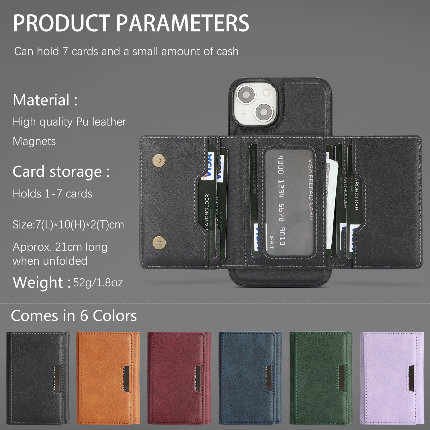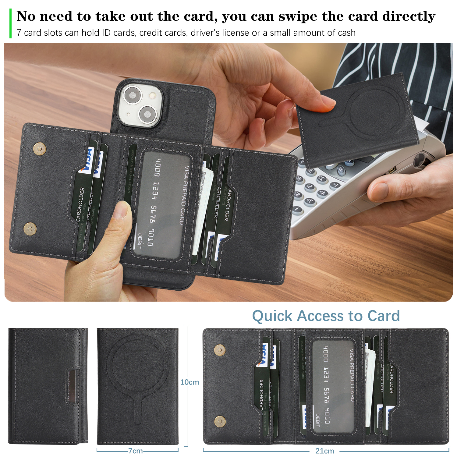 - MagSafe Compatible Supports for MagSafe accessories and wireless charging, featuring a minimalist magnetic leather bi-fold design with card holder functionality.