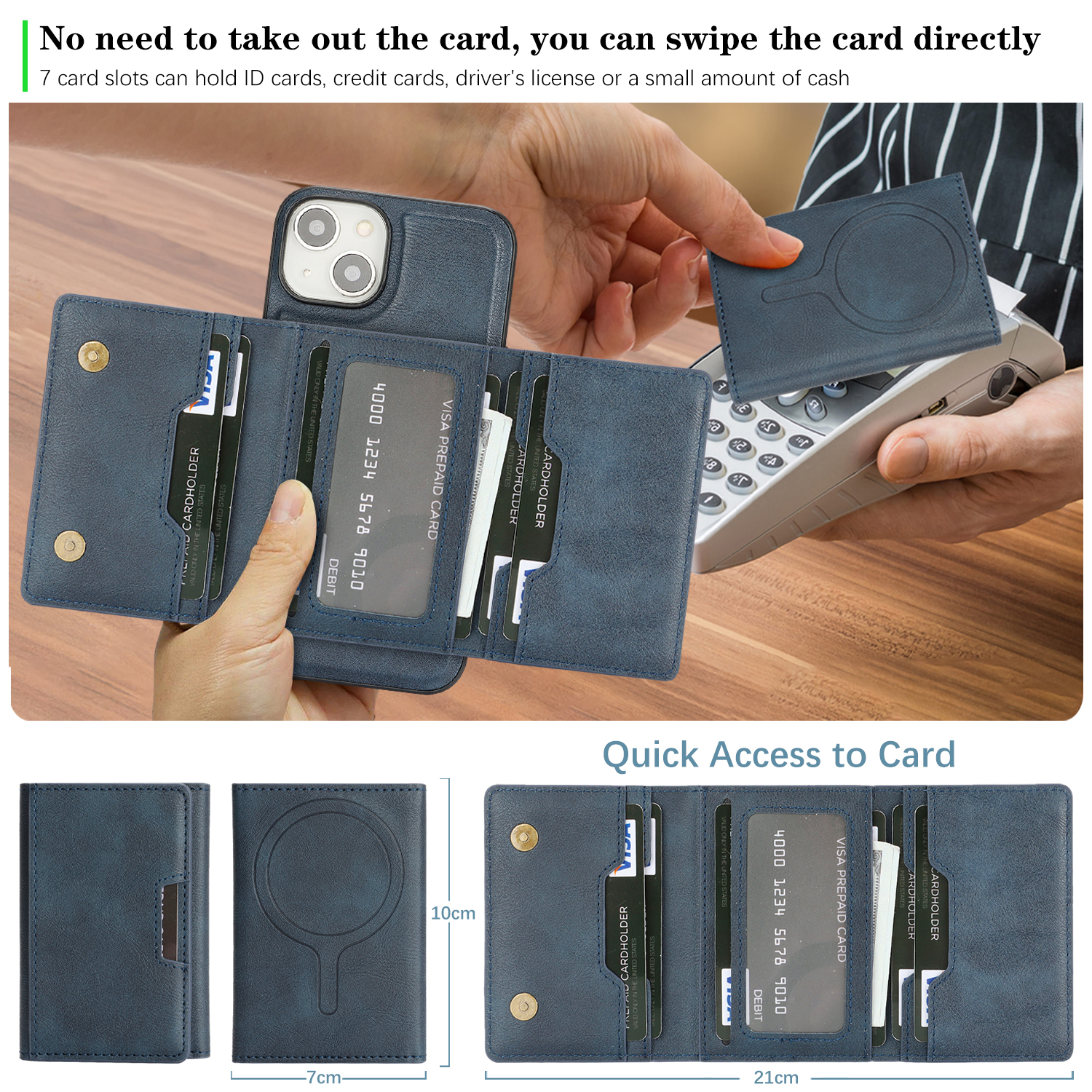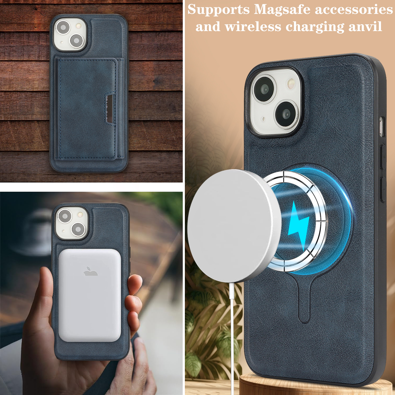 - MagSafe Compatible Supports for MagSafe accessories and wireless charging, featuring a minimalist magnetic leather bi-fold design with card holder functionality.