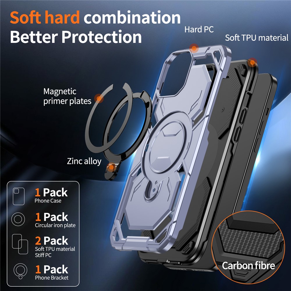 - Magnetic Ring Kickstand Features a magnetic ring kickstand for easy one-handed operation and doubles as a convenient phone kickstand for desktop or in-car use, enhancing versatility.